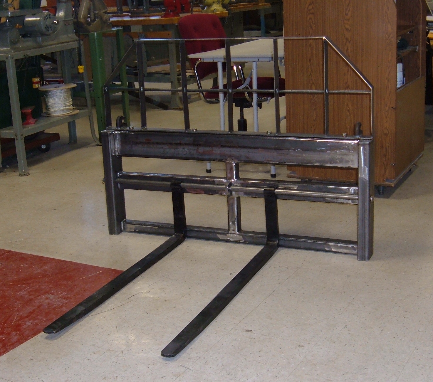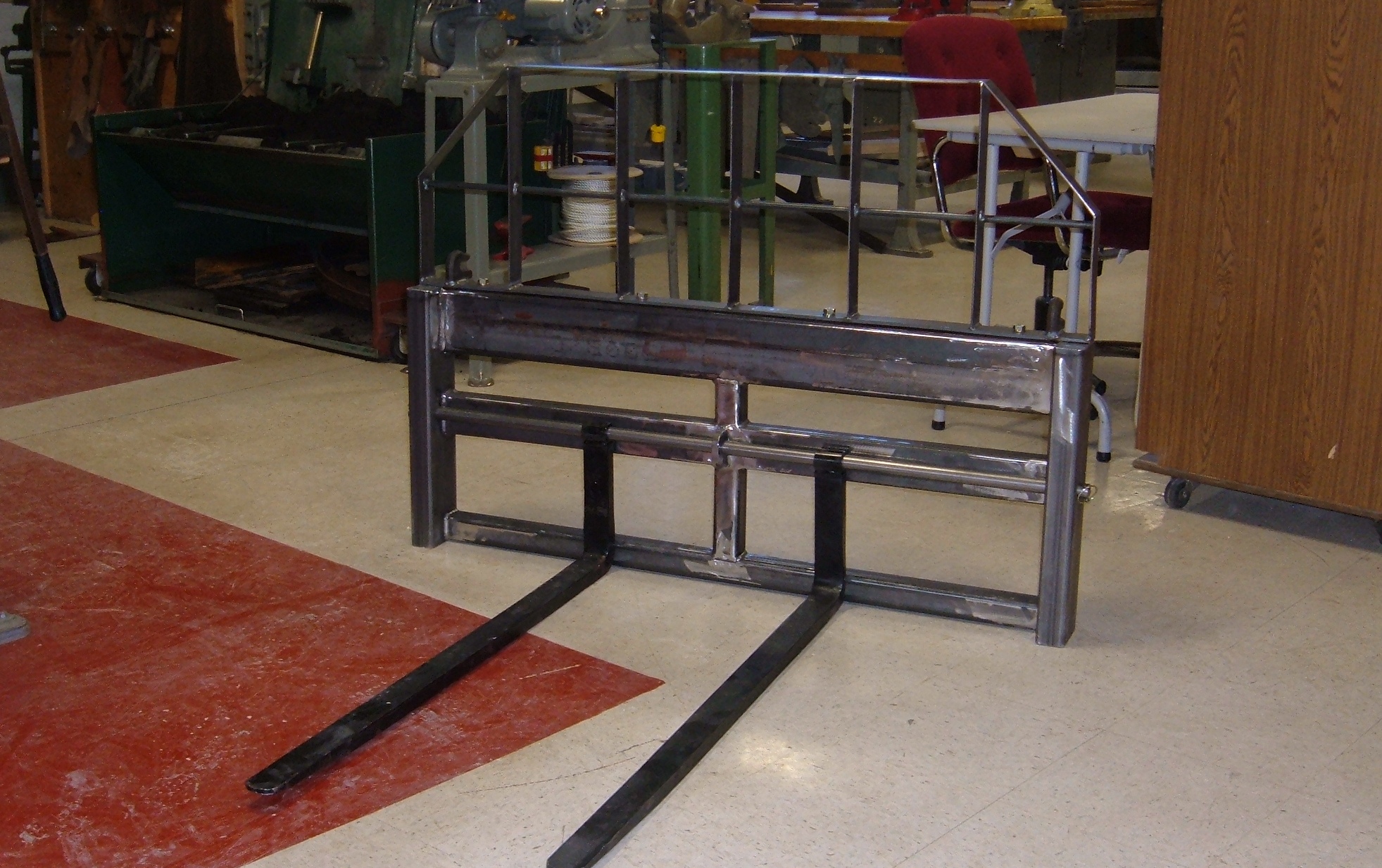 Those of you who are looking for a set of forks may want to build something like I did, I have a 200cx loader and John deere wanted close to $950 for a set of Frontier forks, I did not want to have such a heavy-duty set that was so heavy to lift. My loader has a capacity of about 1000 lbs, so I ordered a set of forks from www.budgetforks.com they were real nice to deal with, cost me about $150 for the pair plus a cross shaft for them. Then I set out to build something strong but lightweight, plus a few other modification such as a removable top guard, welded chain hooks, and easy to remove fork tines so I could store it in very limited space. I did alot of drawing on paper, and this is what I ended up with, I purchased the quick attach hooks and pins from John deere, I am still waiting to weld on the pins, (my loader is stored for the winter) With the money I saved I purchased a lincoln power-mig welder :D, so now I can build other attachments. I have about $275.00 in these and they will lift more than my tractor can! I can't wait to get them painted. I am also building a log splitter and have that all ready for paint. This is a hortizontal and vertical splitter. These have been fun projects to build in my off time. I am a middle school shop teacher and have access to many tools, and a nice warm place to work in the winter.....:)
