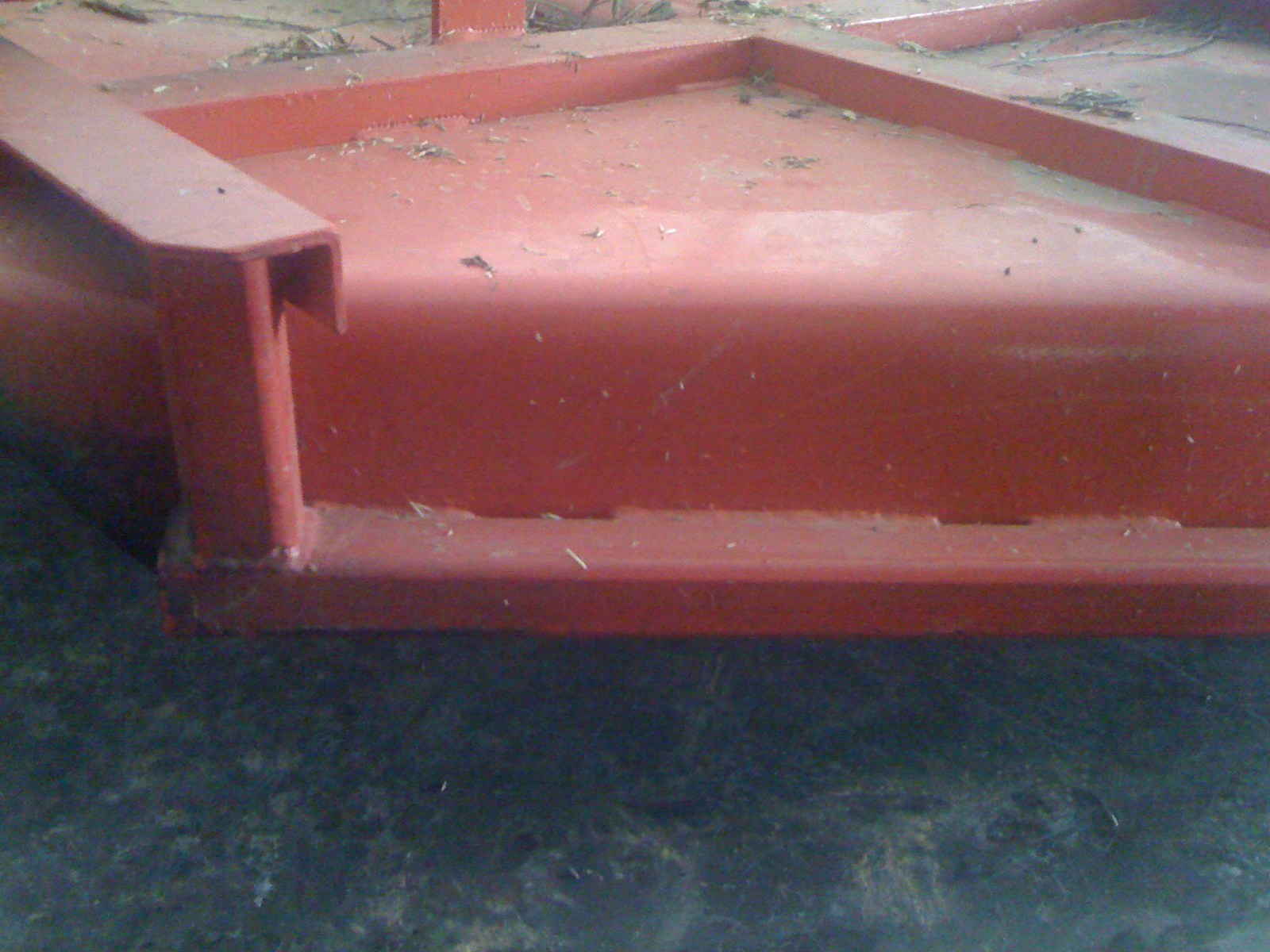 My cutter has 3/16" decking on it, a frame made of 3/8" wall 2"X2" square tubing (yeah, very, very heavy but I had it laying around) and 3"X4" 1/4" angle. I picked up a set of 1" blades from a small roadside implement shop that was going out of business as well for it, but I don't recall what I gave for them. Anyway, I use it as a battering ram and always chop up anything an 8k to 10k tractor will run over. It ain't pretty and it doesn't have any fancy name to it, but I feel it is right up there with the Brown cutters that would have cost me 6k or more. Here's some pictures of 'Ugly Red". I either beat the paint off it about every year or wear it off so I just use a brush and some MF red implement paint from Rural King to paint it before I put it up for the winters. So, for around a grand, I have a 7' cutter that most people consider over-kill. So, for me, it's definitely the right mower and it cost me around a grand or so total. I've hit all sorts of things with it before and have even broken one of the 1" thick blades. The worst thing I ever hit was a dead deer laying in the tall brush rotting on a 95 degree day. It definitely didn't hurt the mower, but man, was that ever nasty!!