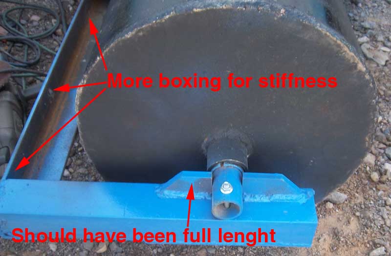 I talked to the welder/trailer repair guy this morning. He said a 1" axle wouldn't work, it would bend. Seems like if you had the pillow bearing right up against the end of the tank, though, it wouldn't have enough leverage to bend it....?? I did notice a couple of you recommended 1 1/2" axles.