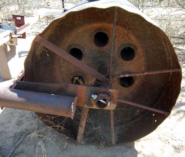 I don't really like stub axles, but since they were already there I just left them when making it into a sheep's foot. It's 2' in diameter and 6' long, filled with water.