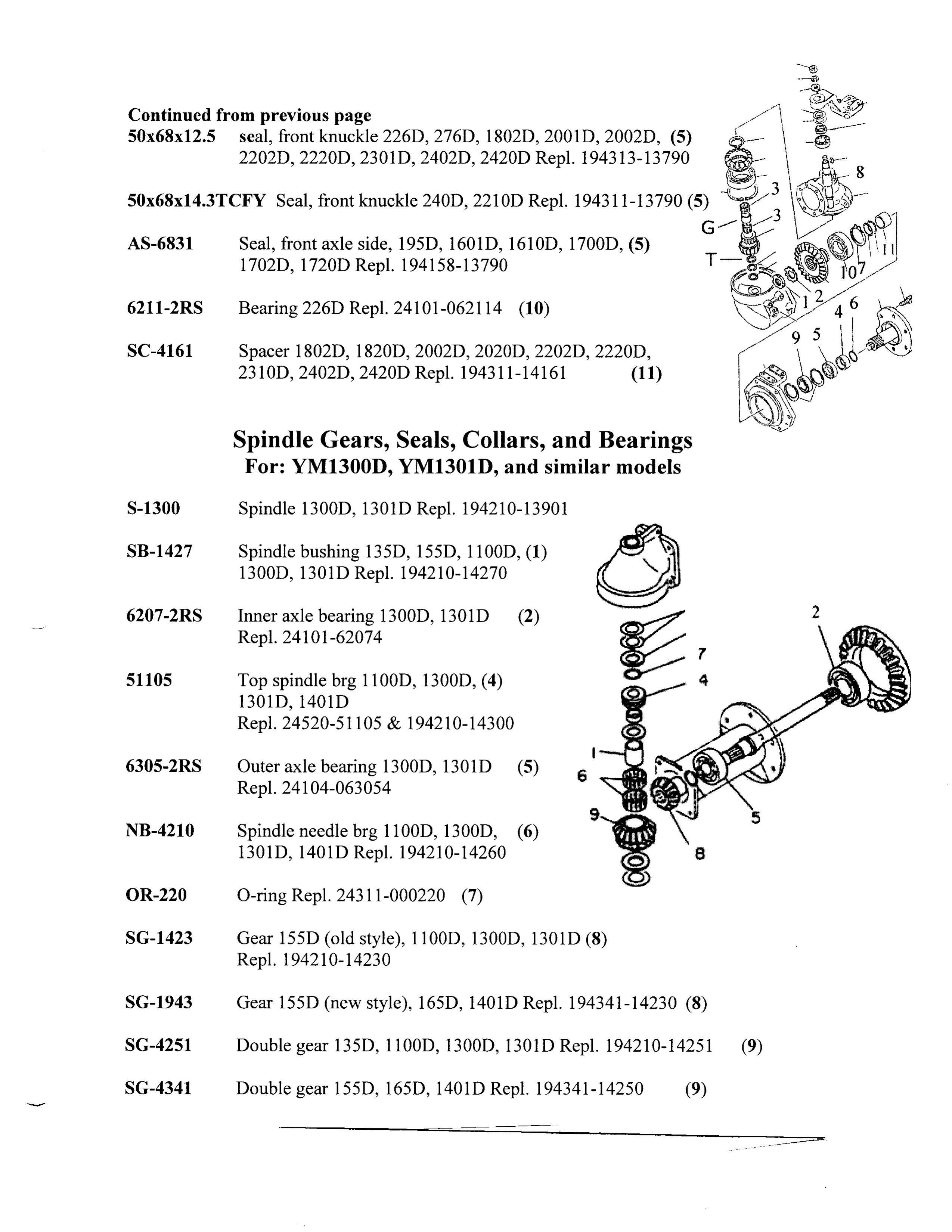 The 1301 doesn't correspond to any US model. It is similar to many. Really, all of them are more or less the same, different only in size and transmission type amongst the YM series. While torque specifications or other minor details may be different, the principles are identical. The 1301 has an engine I think is unique to it and the FX13/F14, not really the most common machines.