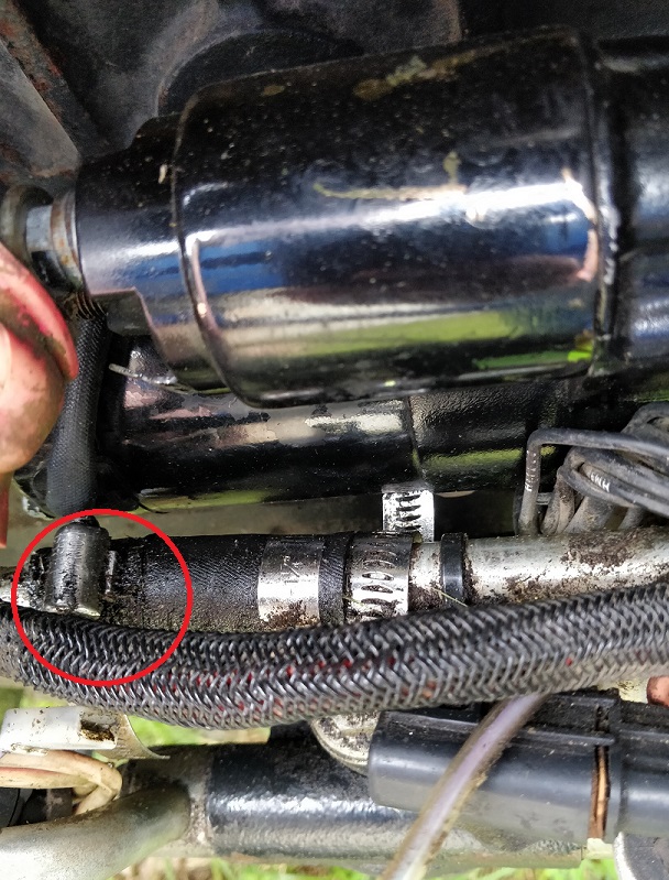 Leak #1 from the left hose clamp, should be easy enough to fix. Is this carry trans fluid to the cooler in front of the radiator, or hydraulic fluid for the pto/bucket?
