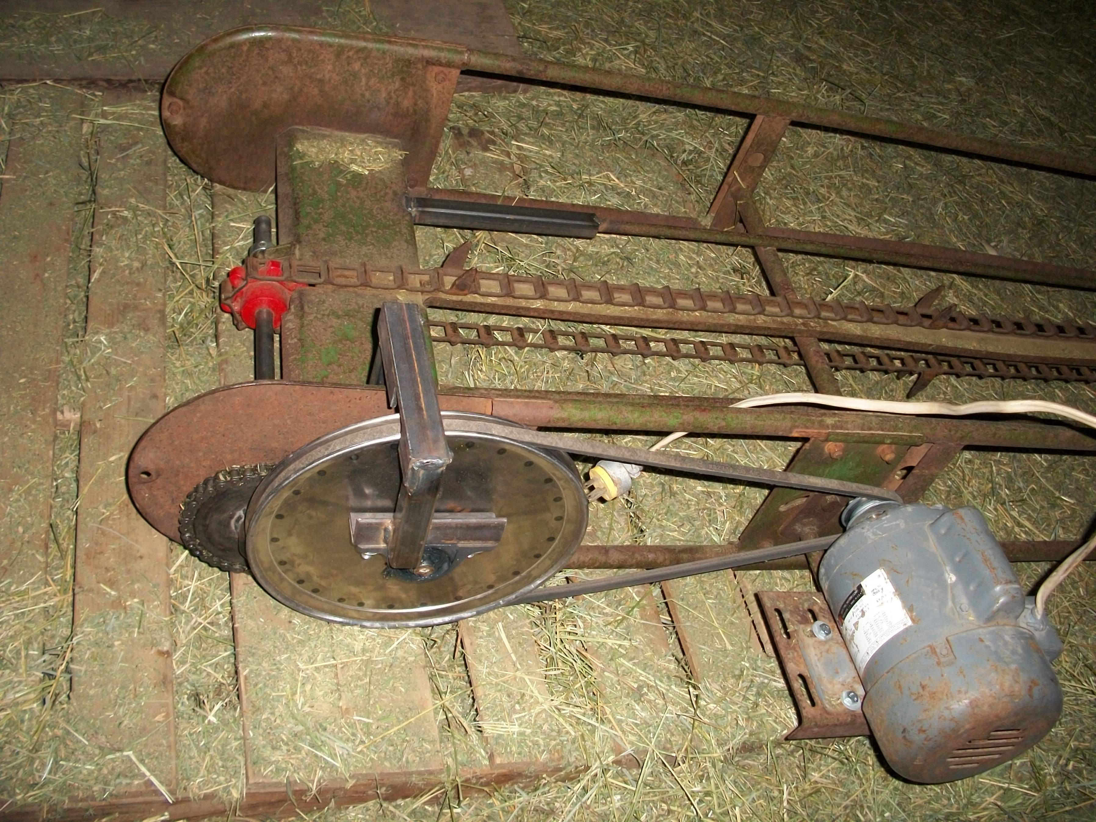 Here is what I ended up with. I found a 1/2 HP electric motor with a pulley on it for $20. I used a 12" weld-a-pulley, they were way cheaper then a cast pulley plus I able to use my Miller 211 MIG welder on it. I found an old belt hanging up in my barn and used it.