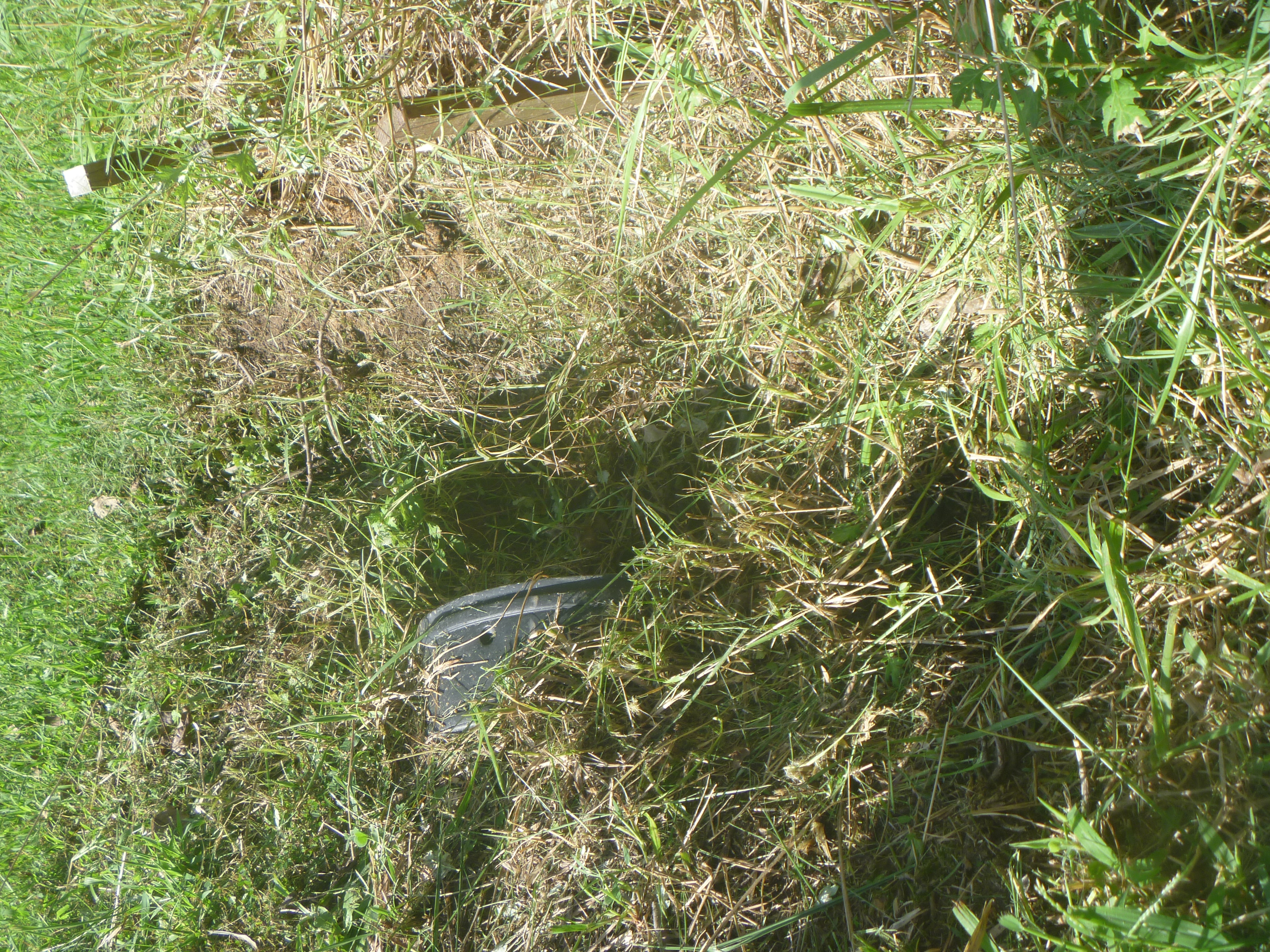 Water drains from a bank through a 10" pipe under my driveway and at the entrance to the pipe the bank drops off about 16". I have stakes to hold the soil and never mow so as to not disturb soil or the grass/weeds and that has worked OK for 5+ years but I want a more permanent solution. The area I want to support with a retaining wall is about 4 to 5 ft long. I was hoping for an off-the-shelf solution like a galvanized window well anchored in a yet-to-be-determined fashion but thought I had better run this by TBN first. The pics are pretty hard to discern but maybe between them and the writing you can visualize it.