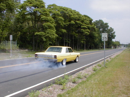 I do have a "burn out" pic, but my photographer (my son) was too much "wow" and waited until half the car was hidden in tire smoke.