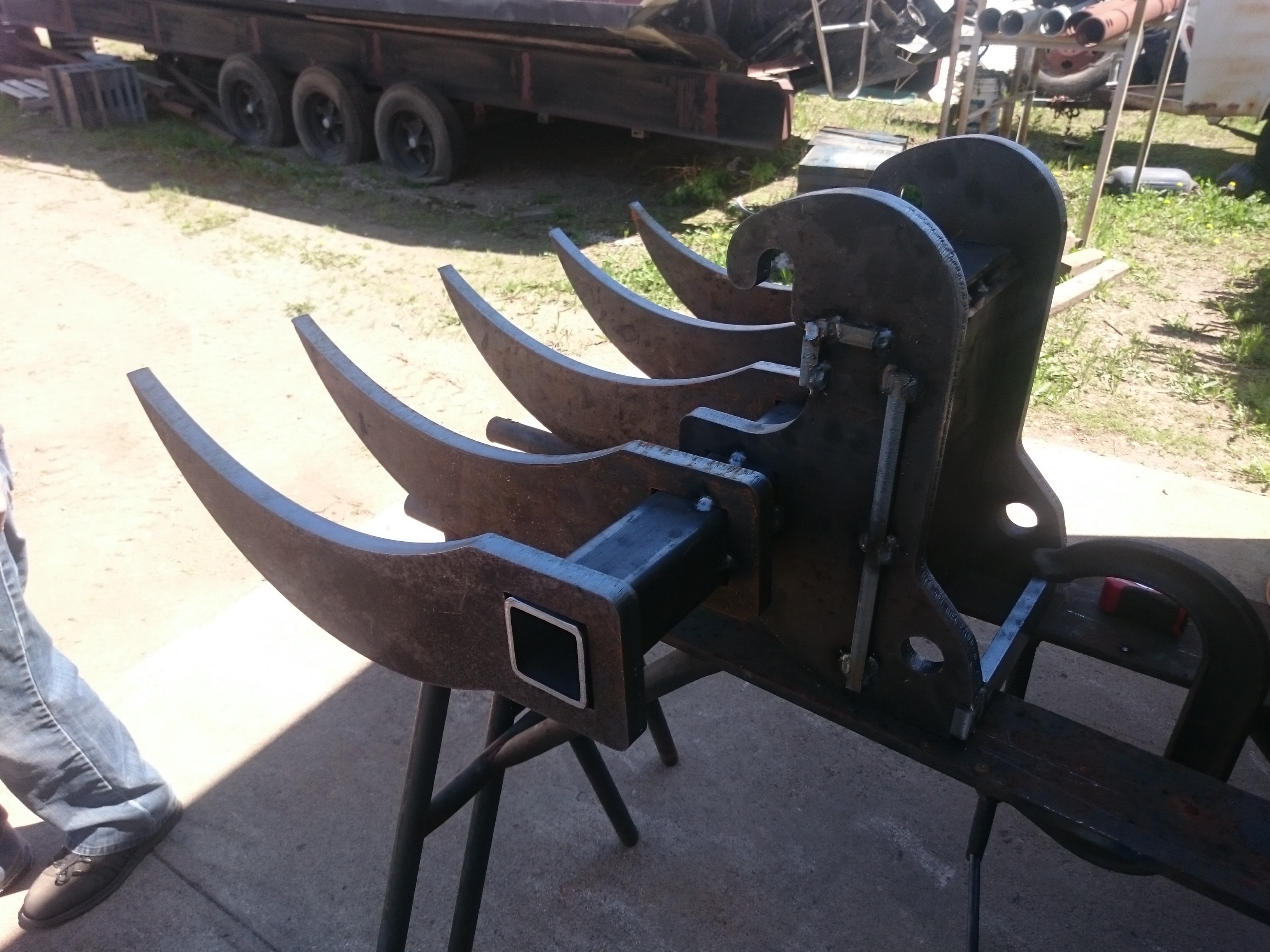 as the title says, I have been removing trees, many of them at the cabin, the Bobcat E32 worked well with the ripper removing roots and such the issue now is clearing the debris up, on the weekend installed a thumb but its not working well and will be returned, what I am looking for is a 24 to 30 inch rake, maybe 5 tines to comb the ground pulling branches and roots to apile and I will move them with the skidsteer.