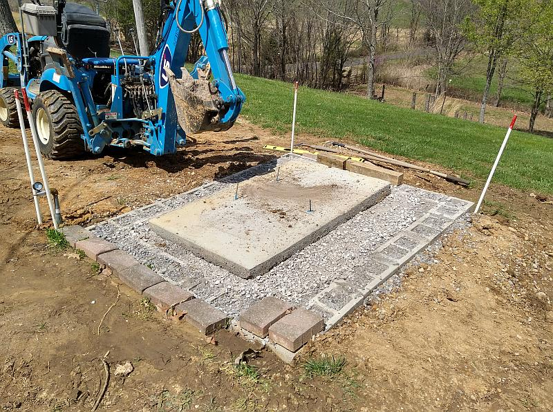 Of course, the other option is to pour another slab for about $45-50 or so at $4-something a bag. The existing slab is sort of in the way, but could be worked around.