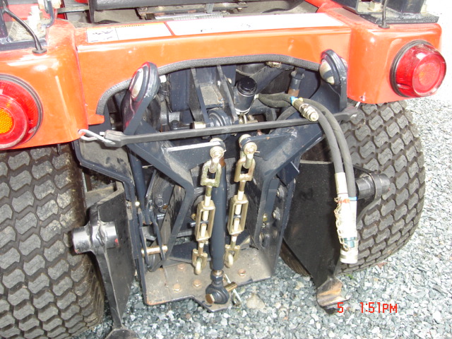 First 2 shots are what you see after the BH is removed; one extra pic of the hydraulic fluid sight glass (oops!); the last picture is with everything down & ready to use 3PH.