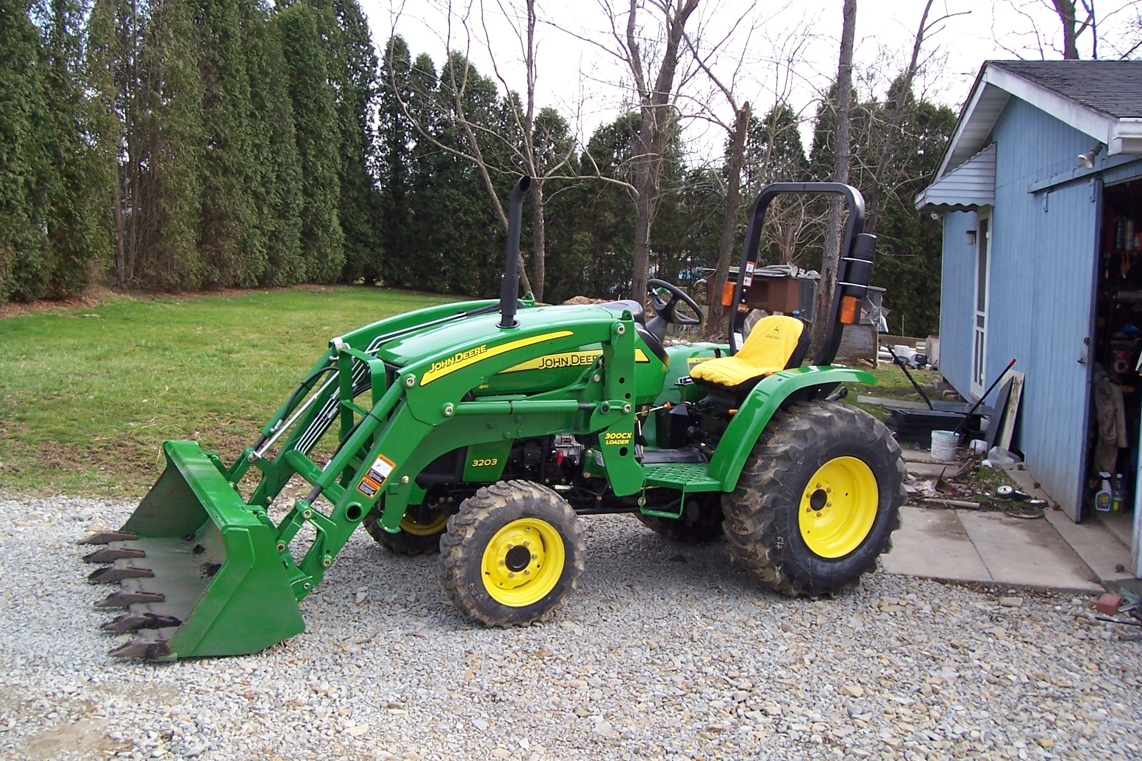 I finaly got my 3203 today! I ordered it with the 300X loader and the vertical exaust. Just want to say that it is possible to put a 300X or CX on the 3203! I think that this model is often overlooked because of what some people think about it. This is a good little tractor and I trust that Deere knows by now how to build a good tractor, no matter what model is chosen!