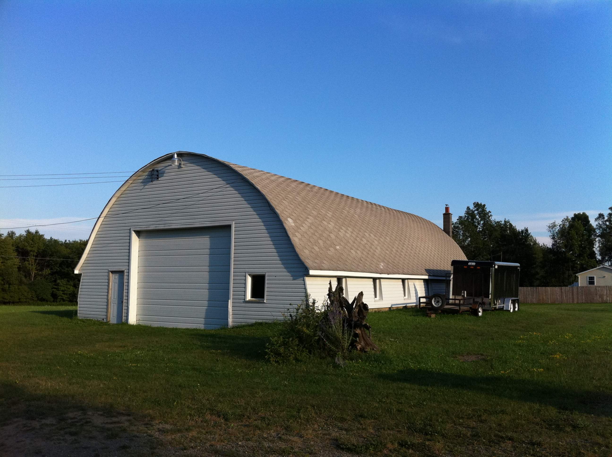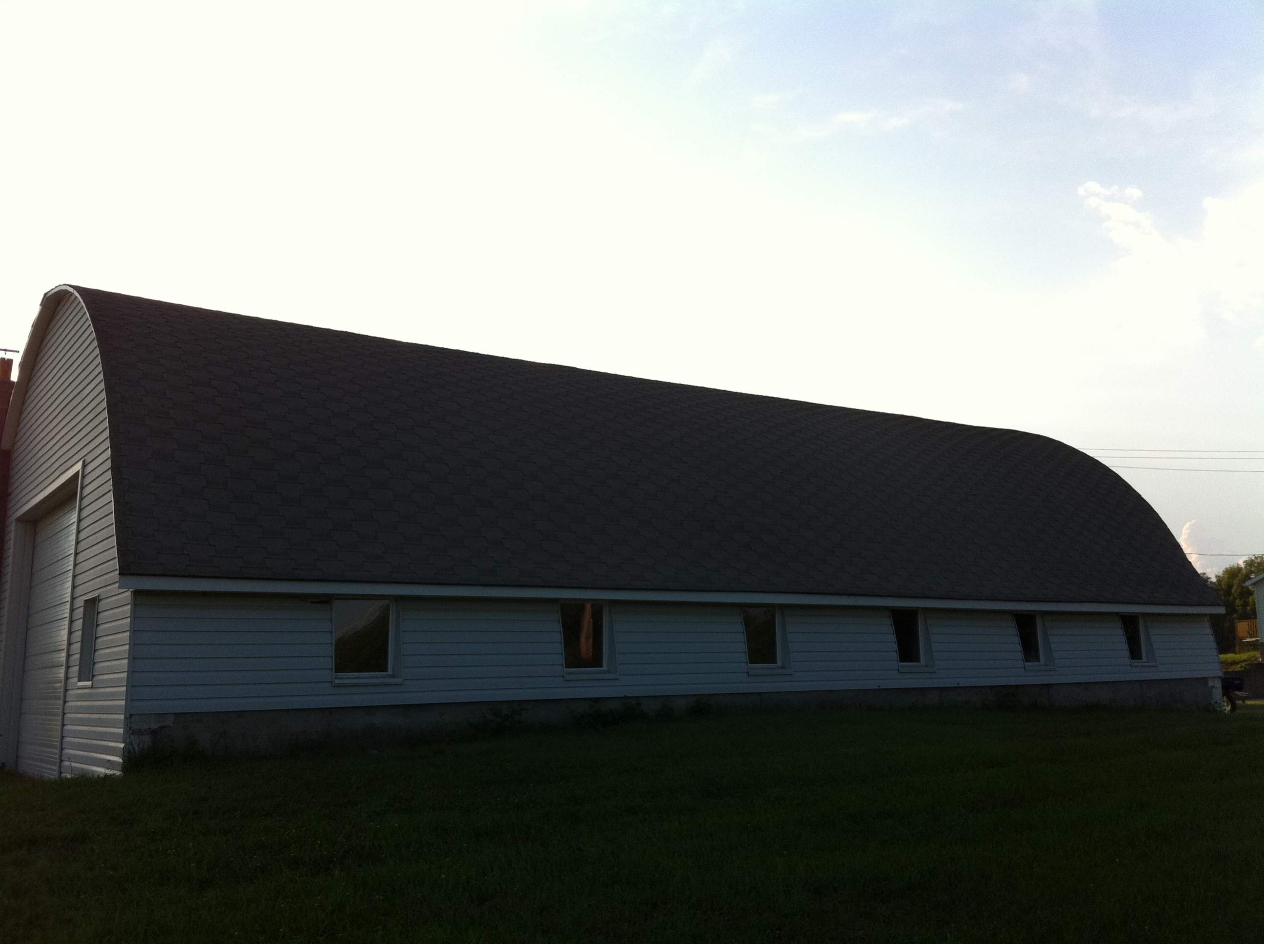 Hey all, I know many of you have had much much more experience with barns and storage blds than I. I have attached a pic of my present barn that has a bad roof. The wind has torn up the top or the barn off and it is leaking and now needs to be replaced. I am considering asphalt architectural over the T-Locks.. I am alittle worried about the roof weight.. What about Metal, Any suggestions ? FYI.. it is not just a curved roof it you look close you can see a little flair at the bottom edge. I would appreciate any recommendations.