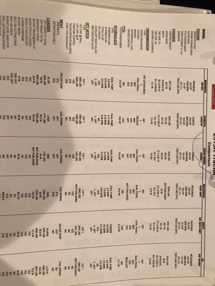 Saw a newer print of the 2515 comparison of specs to some other brands in the 25 HP class at Keno 's site.