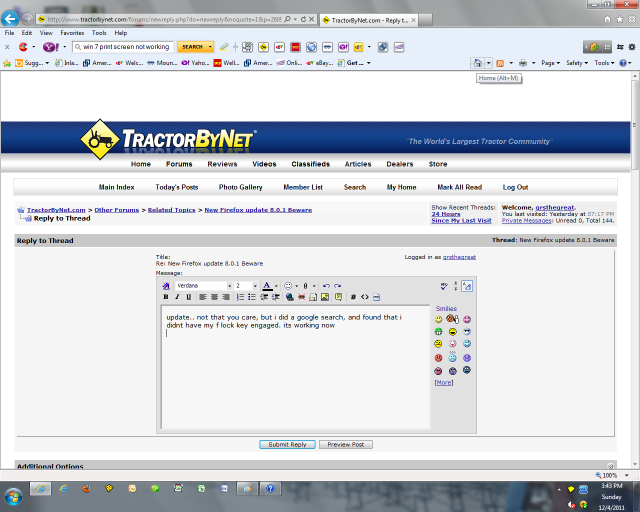 Since I keep my Firefox auto update set to manual, you'd think I would have been smart and checked the web for others responses to the update prior to allowing it to install, BUT NOOOOO. I updated and spent most of the day trying to find what the problem is and so are several other 1000 Firefox users.