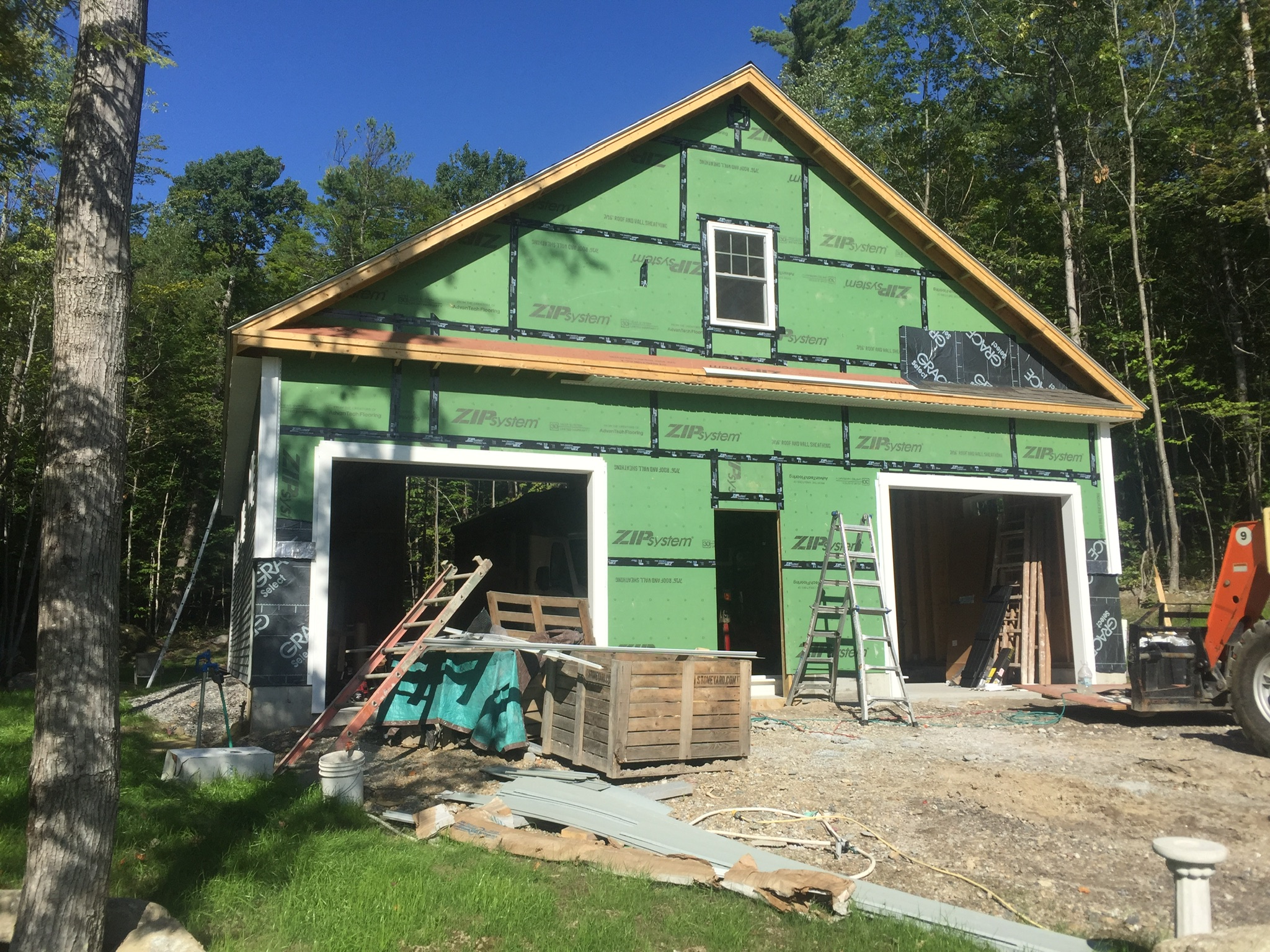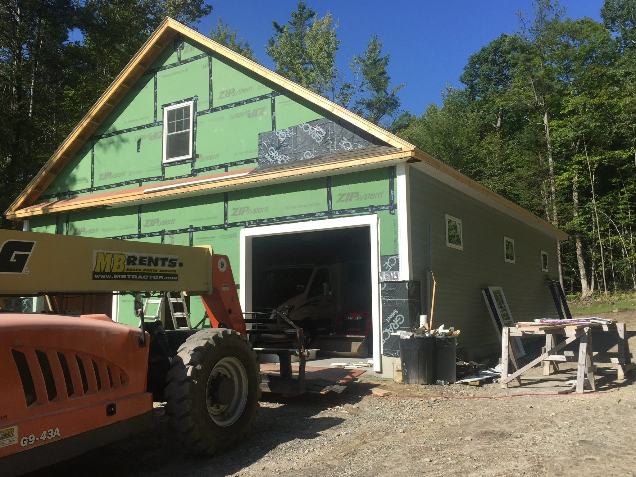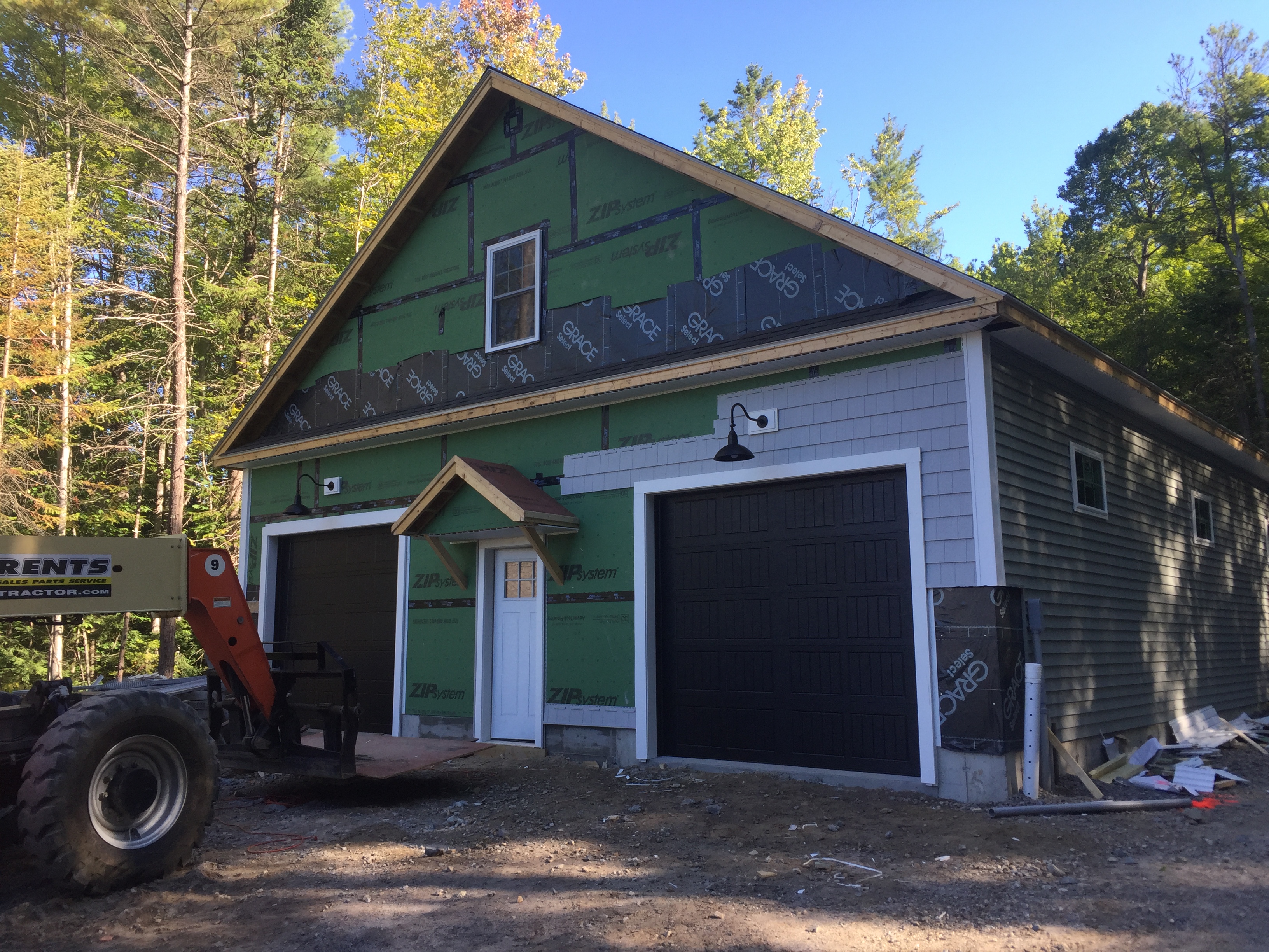 Garage is near done. Overhead doors tomorrow and the front vinyl shake style shingles going up.