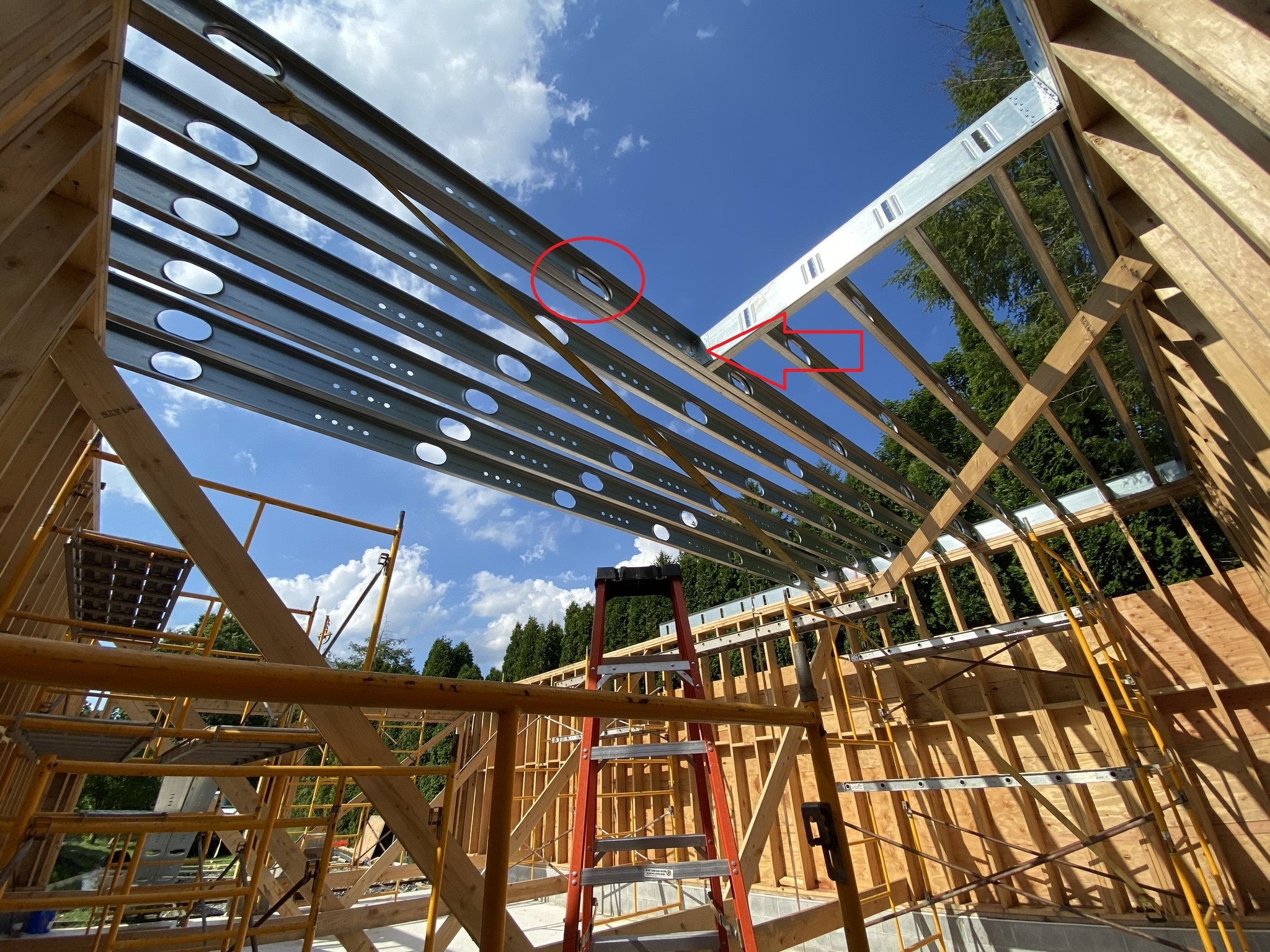 Are you sure the force isn't horizontal - the wind pushing the wall in. That tall wall makes a pretty good sail