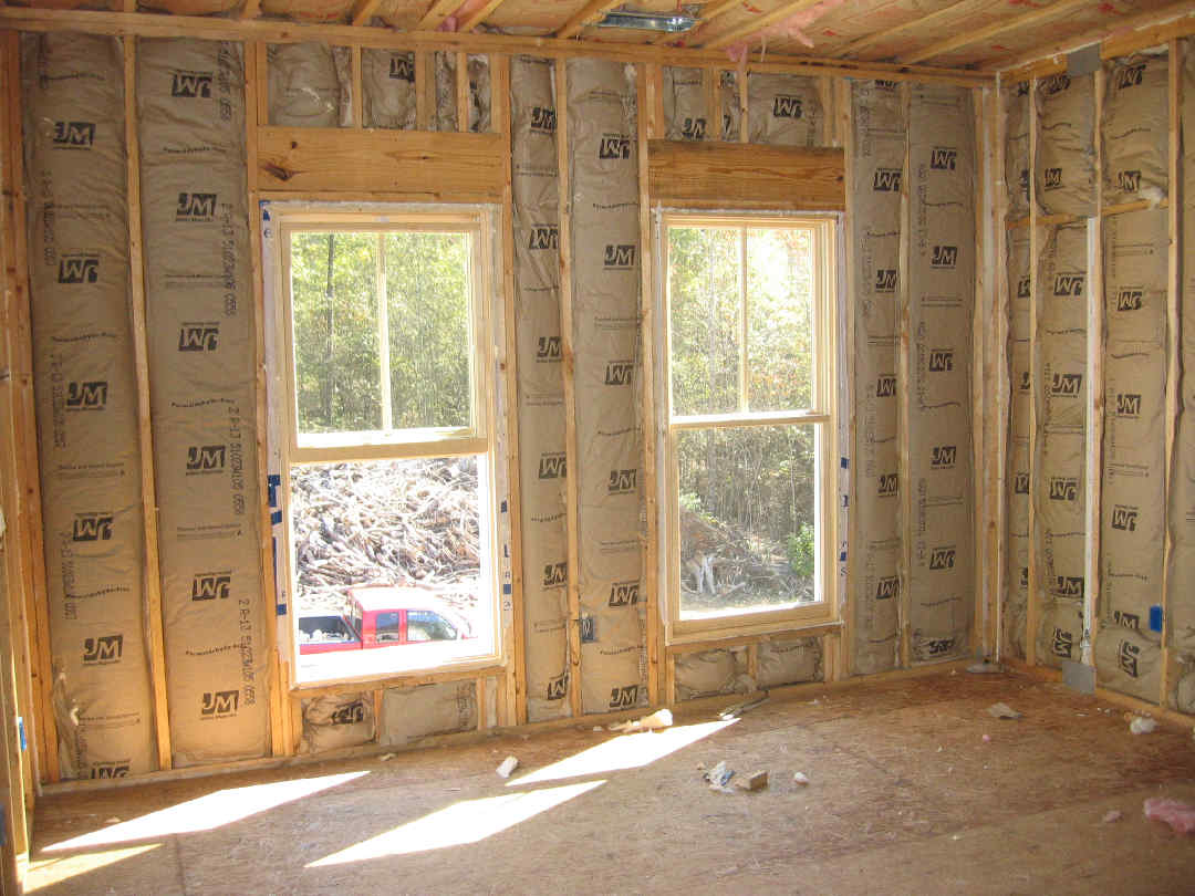 Here's the attic insulation. Walls are R-13 and attic is R-30. My understanding is that this is pretty much standard.