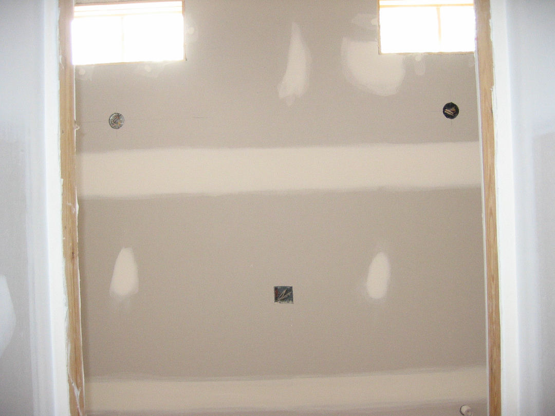 Here's the door to the shower. Now, this is a little different than your general run-of-the-mill shower in that the actual shower head is around the door you see on the right. Our goal was to have a shower that required no door or curtain and that offered some degree of privacy in case the kids came barging in. Although I think our design achieved this, my wife is now concerned that it might be a little drafty in there when showering. We may end up adding either a door or curtain to one of the openings.