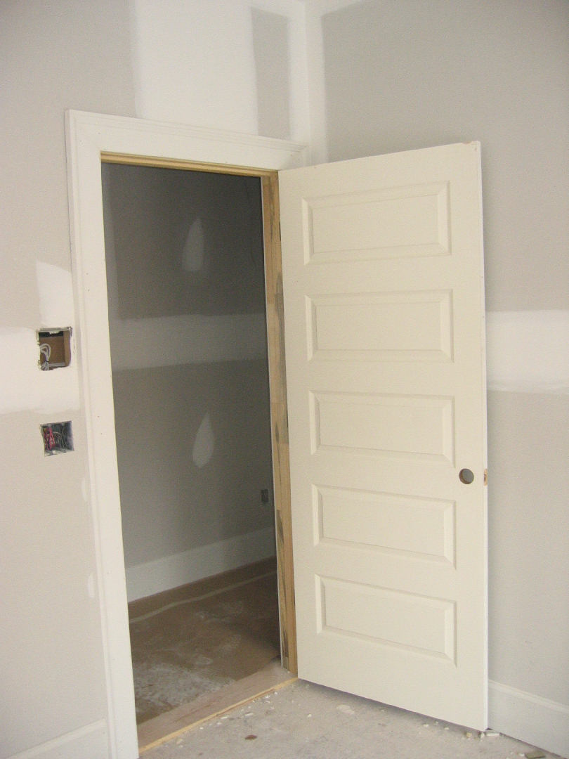 Here is one of the interior doors we selected. We saw these in the Southern Living Idea House I've mentioned before and really liked them. 5 panel, solid masonite. They are heavy and give you the feel of a substantial solid wood door. As we planned to paint them instead of stain, these are supposed to be dimensionally more stable than wood. The door hardware will be oil-rubbed bronze with the knobs kind of egg-shaped - very "old-timey" looking.