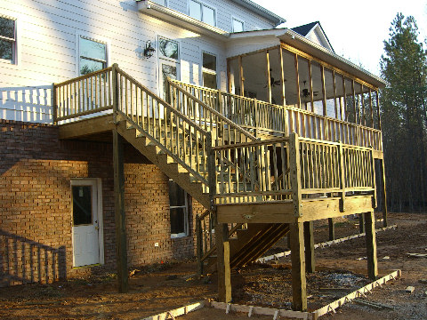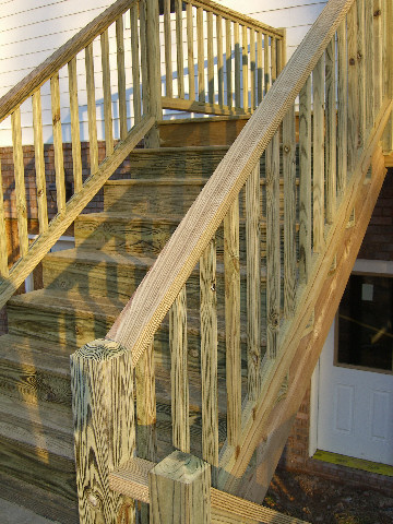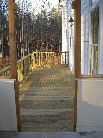 The deck is really more of a bridge to connect the screened porch to the stairway. Here it is as seen from the screened porch. This was not intended as outdoor living space or entertainment area. I'll keep a grill on the deck and that is about it.