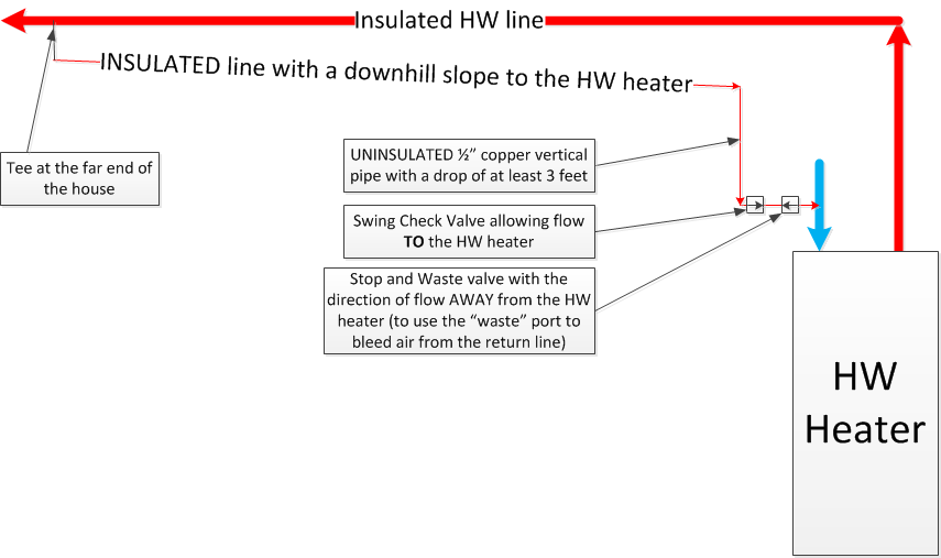 I am still doubtfull about any valve working as there is zero pressure differential or in other words nothing to make the valve open and close. Perhaps even without any swing valve the cooler water would settle in the return line and head back towards the water heater. Perhaps this does work but many times what people think does not meet scientific reality. I would like to know why this isn't common knowledge in the plumbing industry as you have an almost perpetual motion machine.