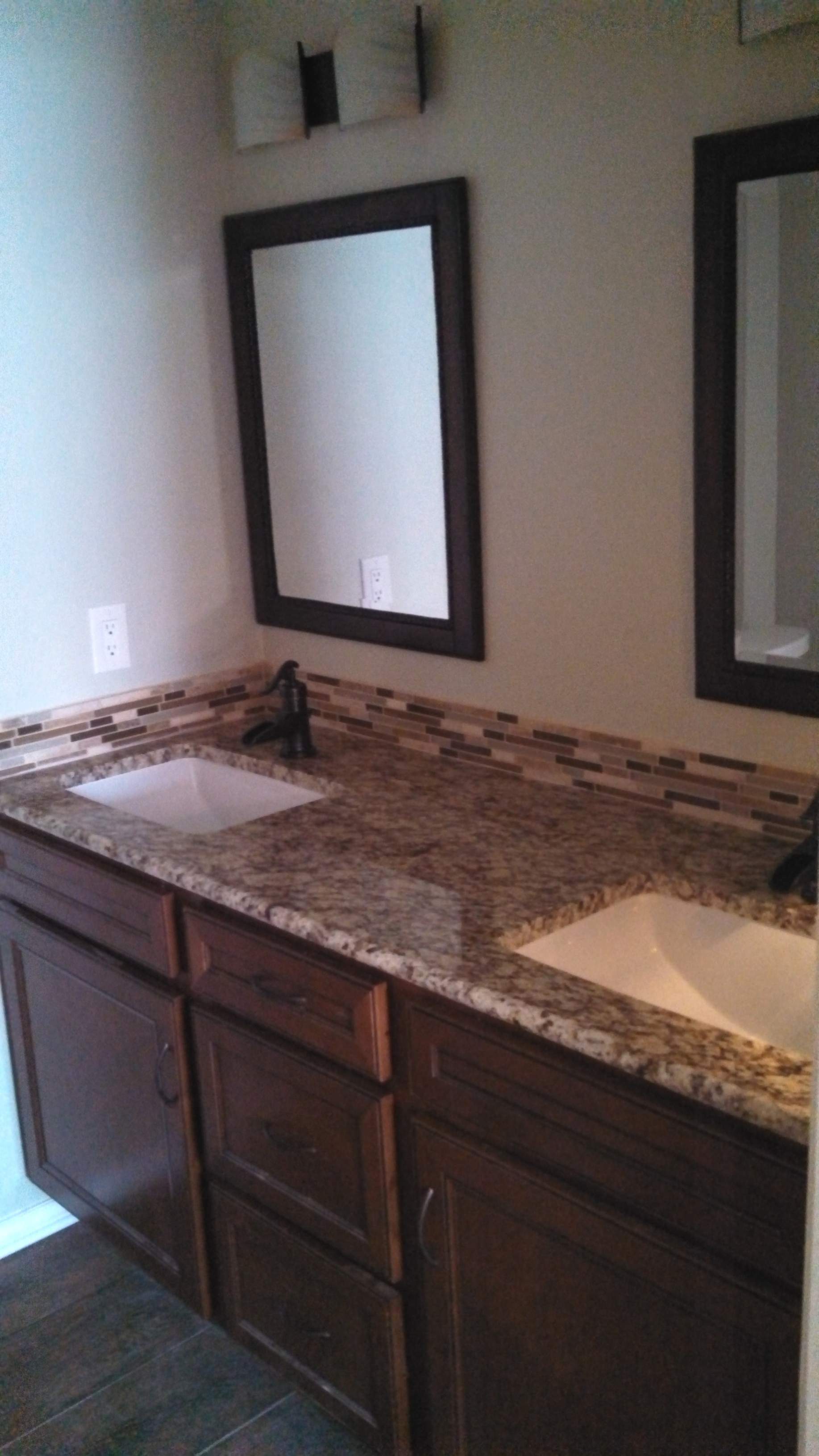 This picture is from a bathroom that I did just before my parents house. It's about the same sized tile and beautiful looking, but it's surface is so rough that it's very hard to clean. My clients likes it because it was so "not slippery" when walking on it after taking a shower, but the little grooves on the surface trapped dirt that is impossible to get clean.