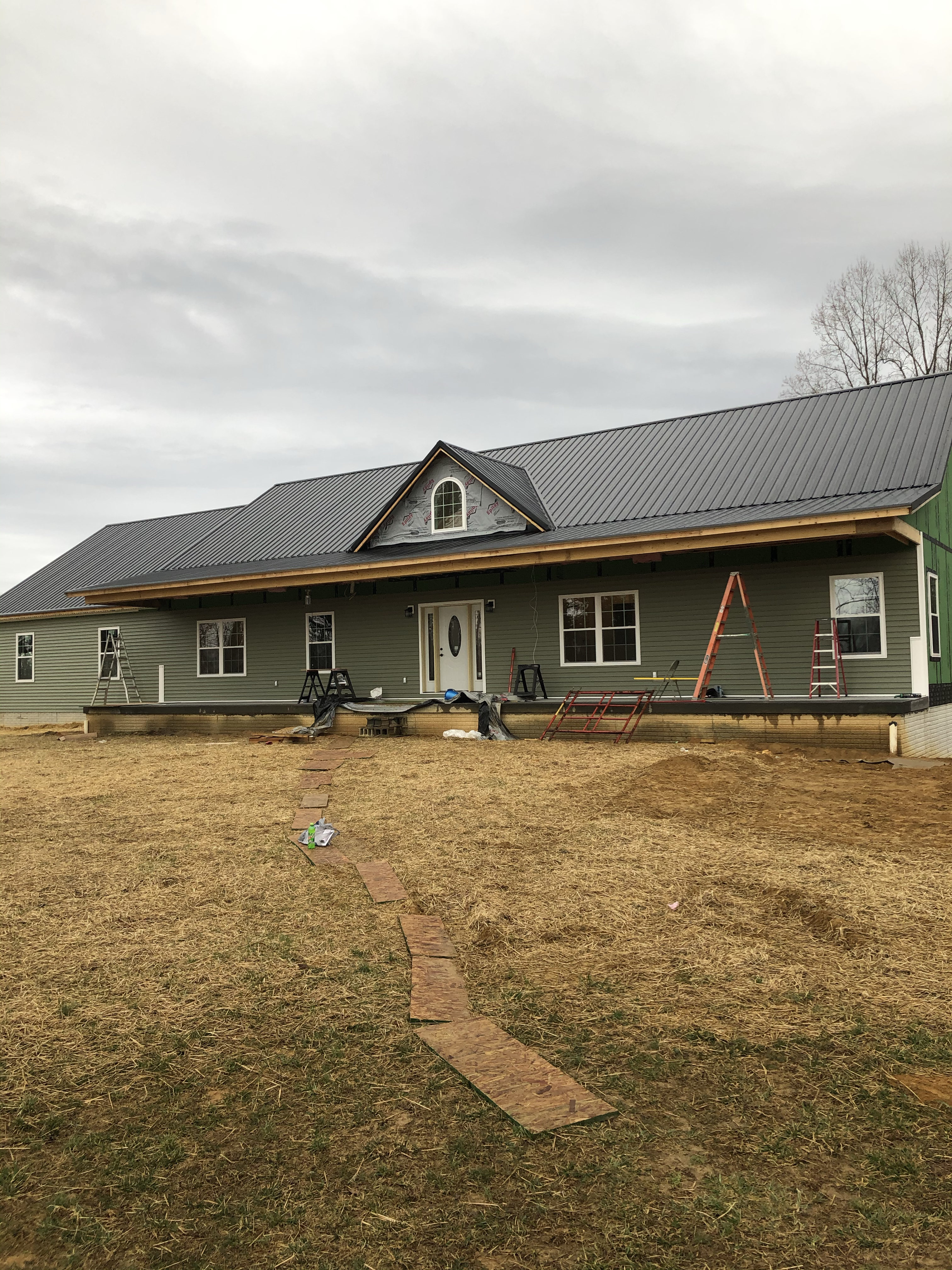 Picture shows progress on the front of the house. Ignore my mess, had not cleaned everything up for the day.