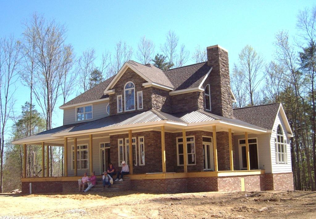 The house is being built and the wifey sees a photo of a house for sale. She likes the detail they have over the porch. I like it. We make copies of the photo. I talk to the builder. He and I talk to the framer using a cube of bricks as a desk. We make some pencil marks on my original elevation. We do some math. Make more pencil marks. Taa Daa! New design done! We nail copies of the photo up on the house. Framer goes to work. :eek::D