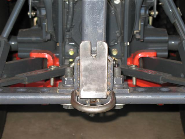 I don't have pictures but let me describe the setup I made to drag logs. On a 2" by 4" box steel I welded ends to fit in the three pt. hitch balls. From the middle of the box steel I welded a 24" upright piece of T steel. From the T steel I welded a similar piece of T at a right angle hanging toward the rear. On the end of the top T I welded a chain clevis and 1/2 way back to the upright T I welded a hook. I gusseted the right angles and welded an attachment for the toplink to the top of the upright T.