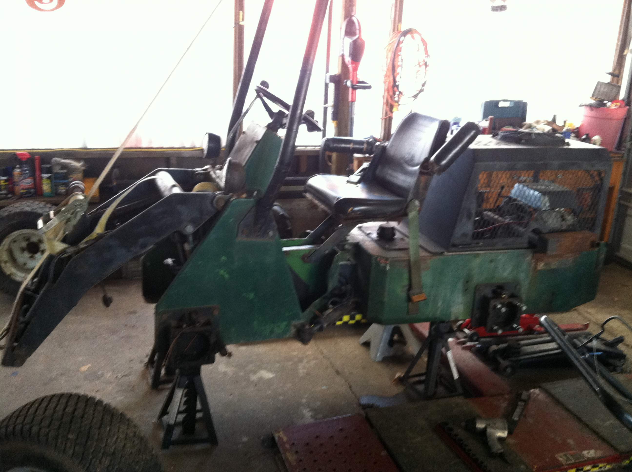 Here's a before and after shot. When he's back on the ground and buttoned back up I'll post some more. I'm making some small mods during the re-assembly. I have an overhead console that mounts between the uprights of the ROP to hold a tilt meter, switch panel and some gauges (oil temp and motor head temp when I get that far). The unit came with 4 driving lamps mounted to the canopy, two front, two rear. I'll be adding red LED tail lamps on the rear so I'll be more visible when plowing snow.
