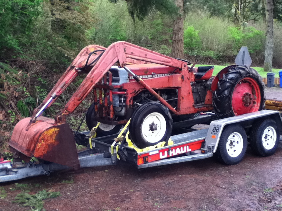 I bought a 1969 Massey Ferguson 135 Orchard Model. It came with pallet forks for the 3 point and a back blade. It has about 5000 hours on it. The Perkins diesel starts up perfect and runs like a dream. It leaks hydraulic fluid and oil like a sieve. It's going to need a little bit of TLC. This is the first tractor that I've owned. I'm mostly going to use it to help clear some land and move stuff around for livestock. I do tree work on the side so the tractor will probably be utilized quite a bit for that too. The first two things I'm jonesing for is a grapple rake and a chipper. I have 5 acres that hasn't been touched in years so it's really overgrown. Right now it has 11.2x28 tires. My property is on a slope (average about 20%) and the tractor gets stuck on the flatter parts of it, especially backing up ( I know, it doesn't have any weight on the back, yet). I'd like to switch to 18.4X16.1's which I believe is what the orchard model came with.