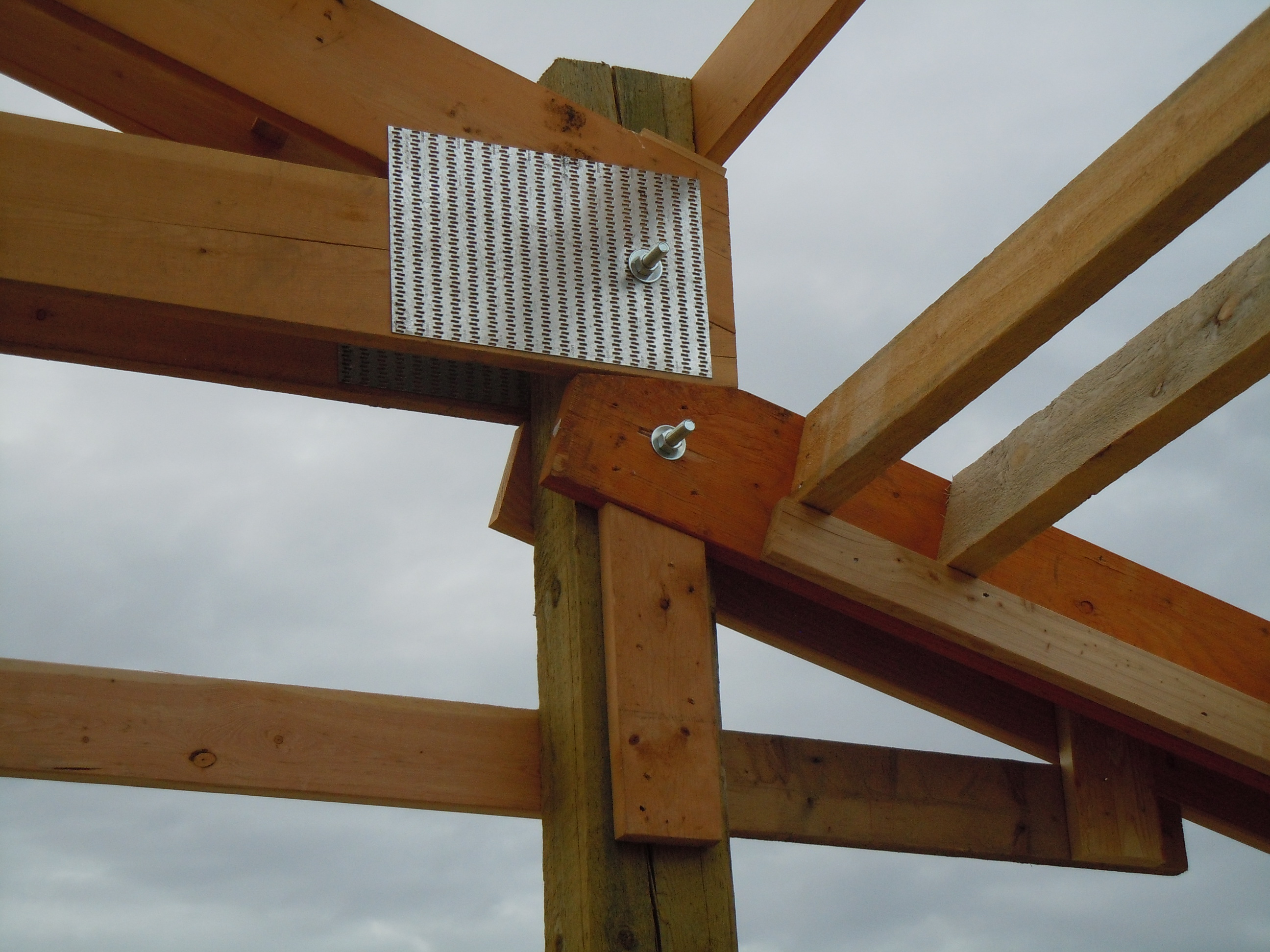 Here's the best pictures I have of how the trusses are attached to the posts.