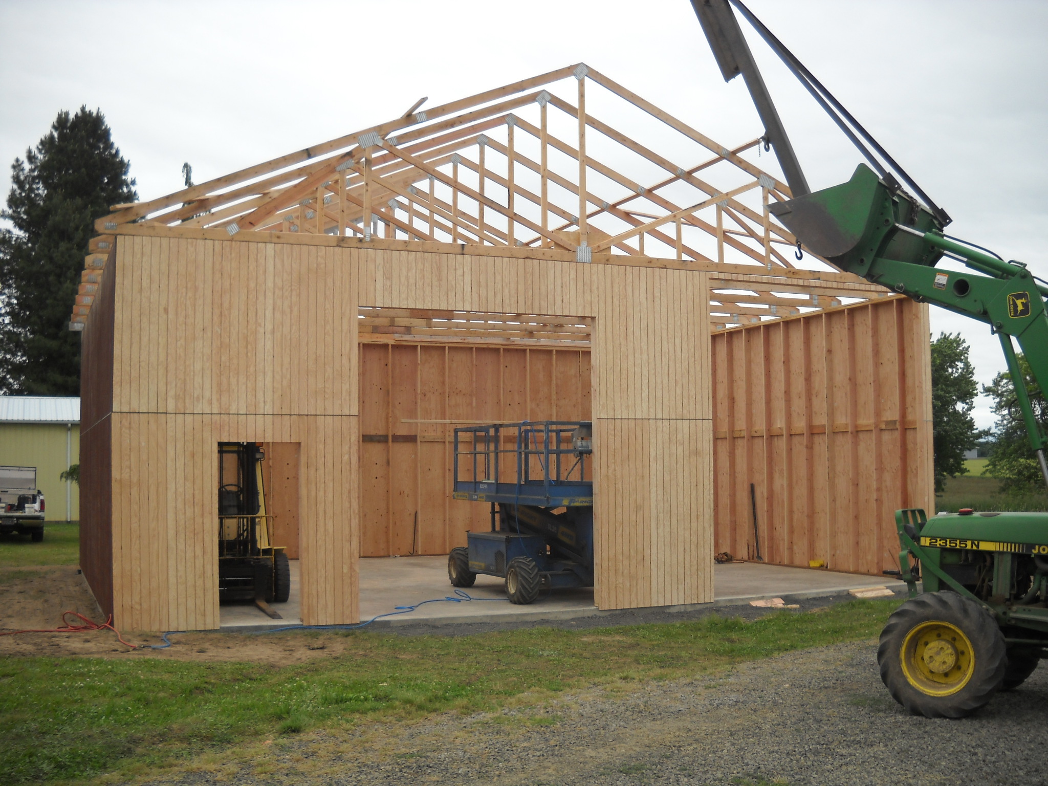 Hows progress coming along on your barn? We put up 3 walls yesterday and the 4Th today along with trusses. it is now ready for the metal roof. It should be done Friday as we aren't working tomorrow because the metal isn't on site. We also have to put on the T-111 siding for the gables but that shouldn't be to hard.