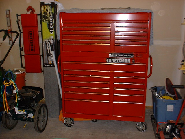 This is my Craftsman Professional with top box. It is a pretty versatile box. It can hold a bunch of tools and is decently sturdy. I also have a Snap-On roll cab at my work place. It too will look good in the shop one day sitting beside the Craftsman. Y'all have some nice boxes, all of you. J