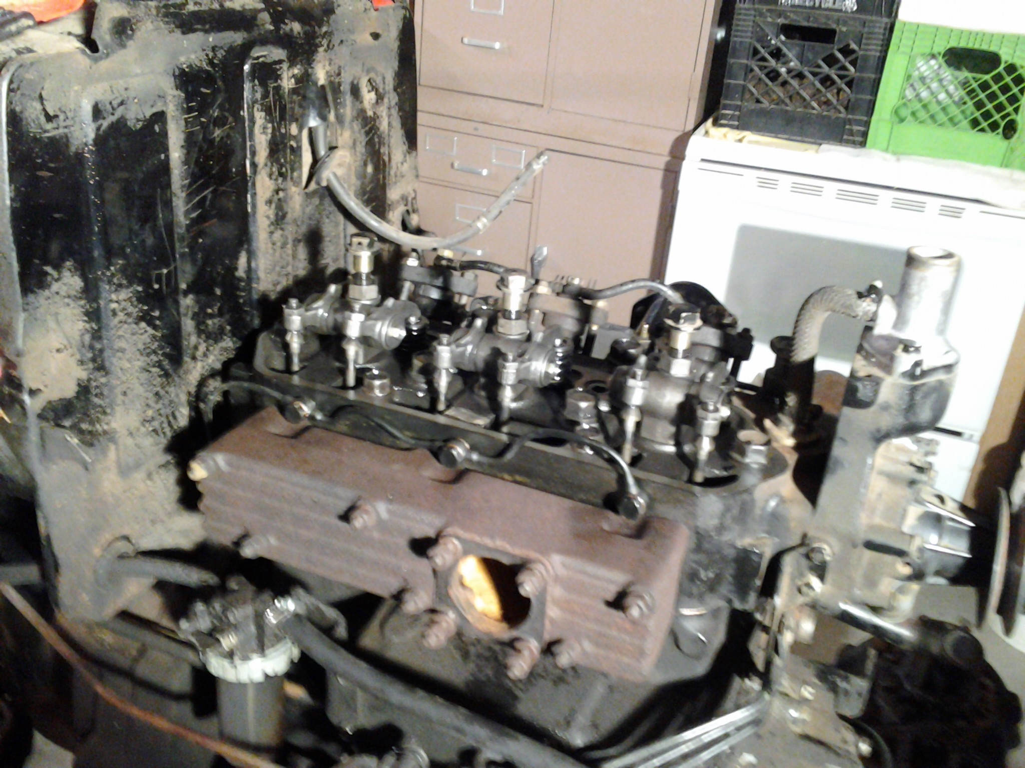 I got back to the tractor today. Three new exhaust valves and the head is back on. Adjusted the valve by the manual and everything looked good till I turned to no.2 cyl. When I set those valves I got looking at the no.3 cyl and it appeared the rocker arm was looser than it should be so I put the feeler gauge on it and it was about .010 when I had just set it on .006. Maybe I was just tired so I thought I would call it a day and think about it. Two of the valve seals I bought from Hoye were bad. One had no little spring on it and the other one the spring broke as I put it on the valve so rather waiting another weel I used two of the old ones.