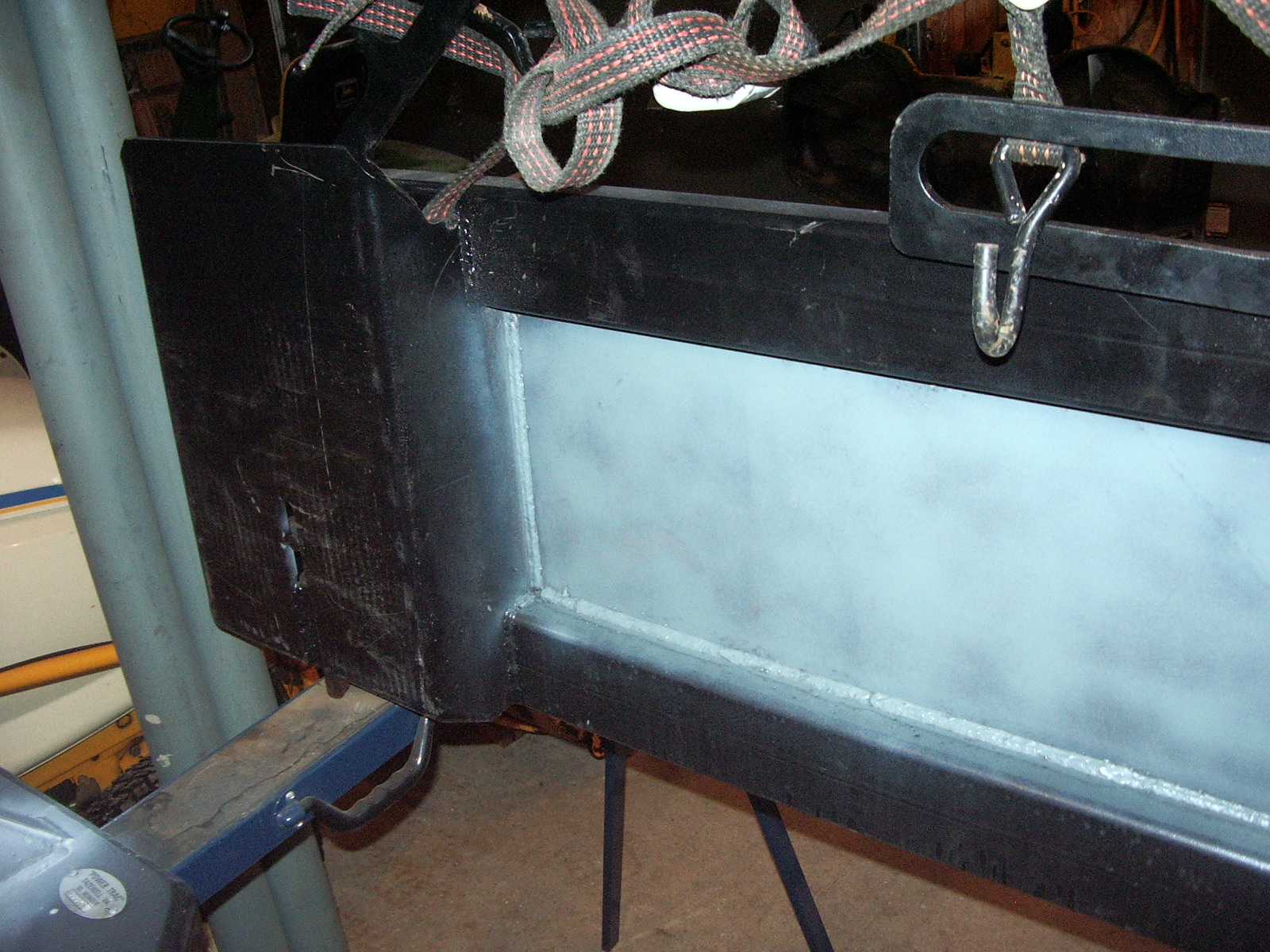 Got my skidsteer adapter plate mated to PT female/receiver plate, and beefed up the tow adapter as well... (Local welding shop.) Easier to see with primer, before black paint...