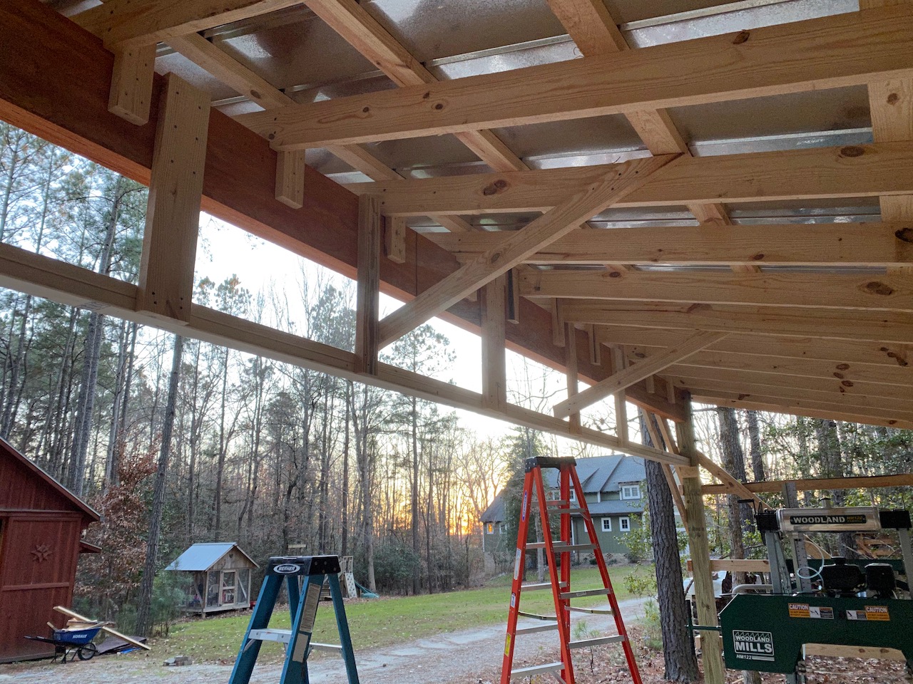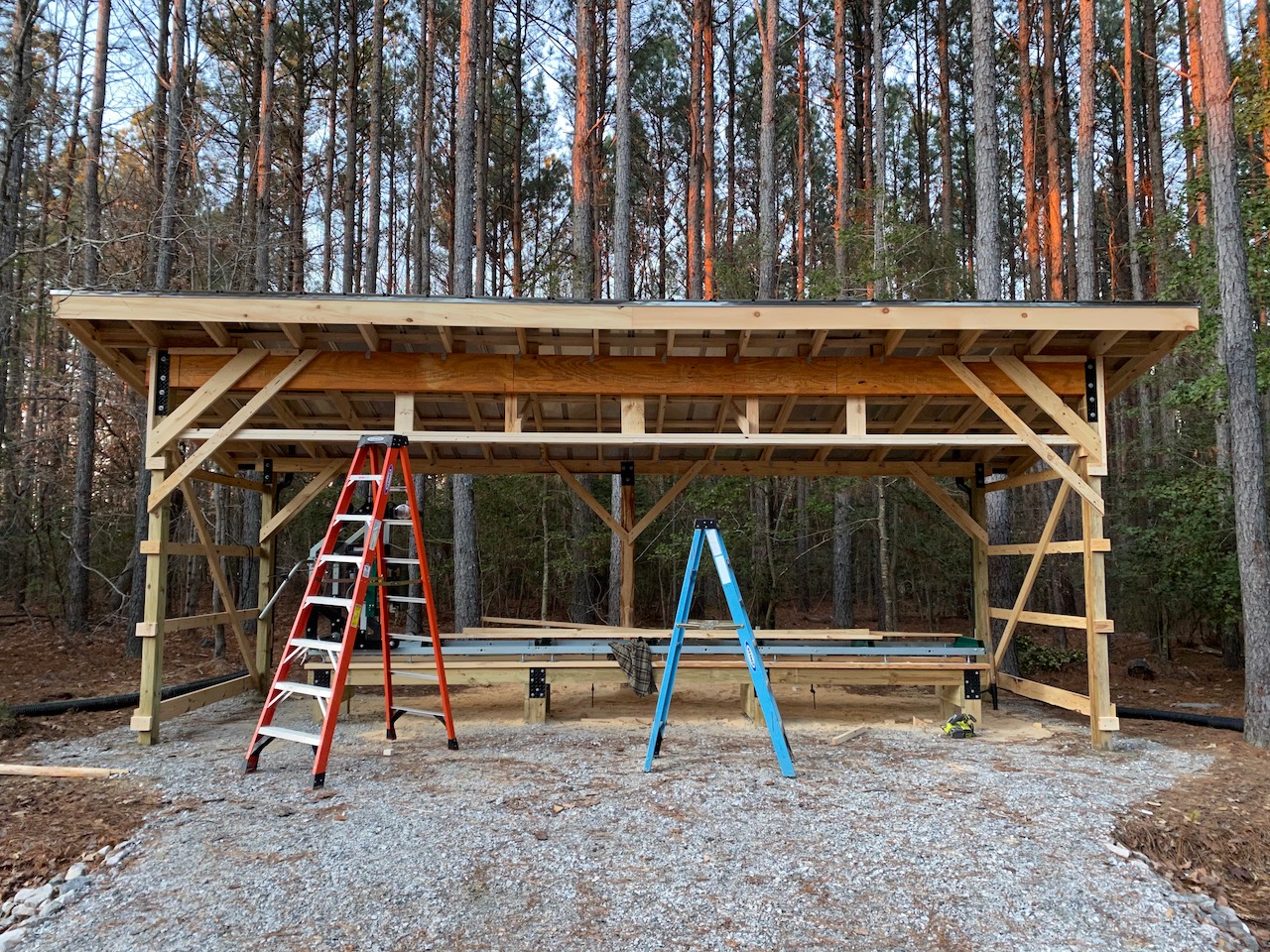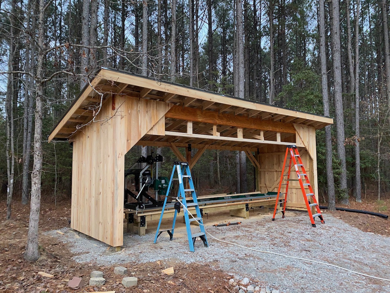 I got a start on the siding this morning, and got everything done except the center section of the front wall. I hope to get that finished between rain storms over the next couple days, then need to put battens on all the joints.