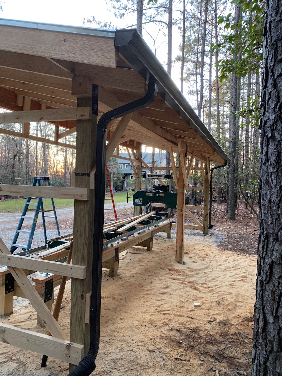 Got a gutter on the rear edge of the roof earlier this week. I had planned for one downspout, but after doing the math for the roof area, I went back and bought a second downspout.