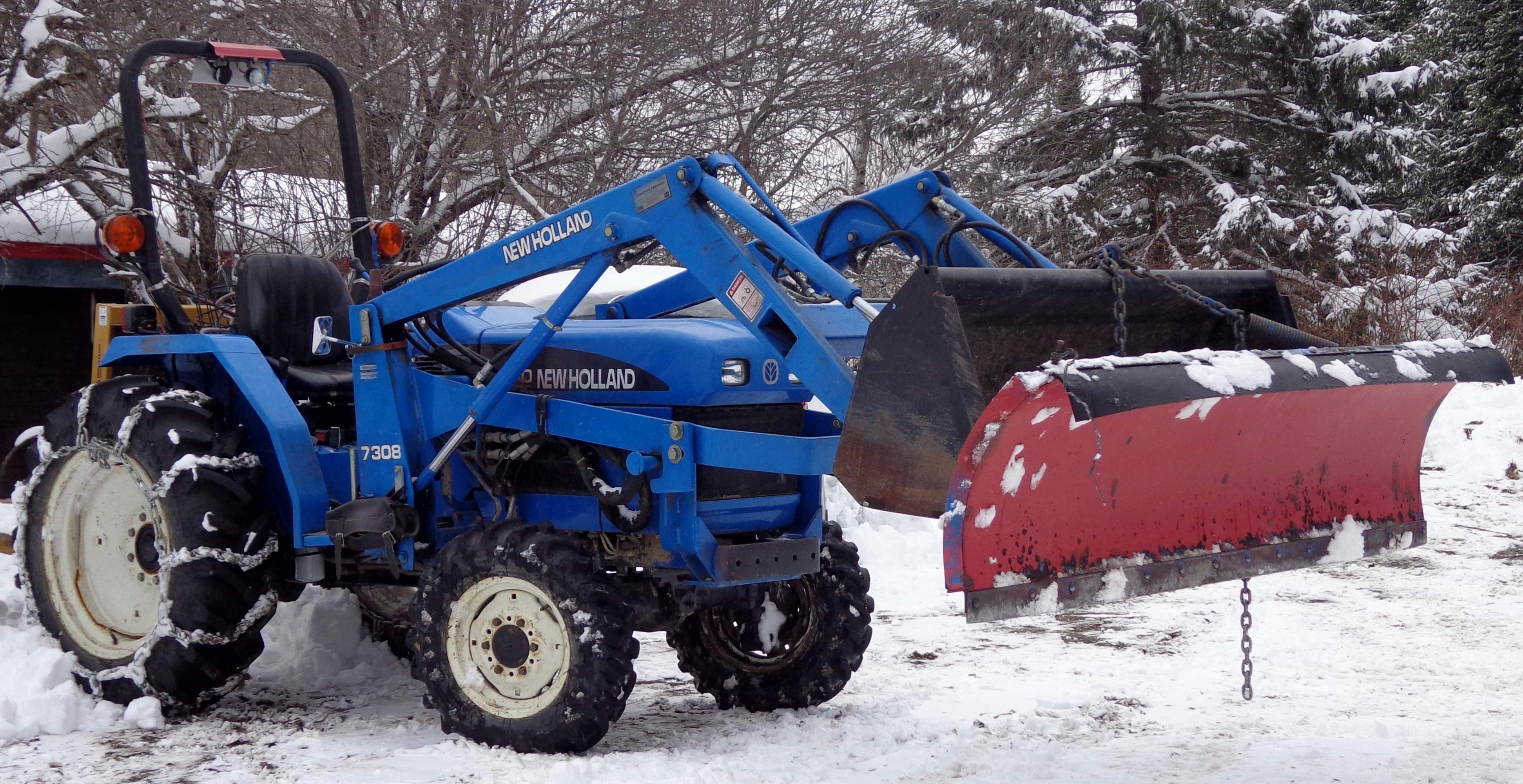 Moss and I live in the land of lake effect. I plow my 110 foot drive w 24 hp new holland. Just use the bucket and edge tamers.