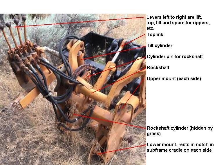 Here's a few pix of Case construction hoes/tractors of that era, note the loader arms - as far as I know, even today's Case hoes use this "backward" linkage - it reverses how the loader curl (AKA tilt) works, so those cylinders are PUSHING to curl. That puts the FULL FORCE of hydraulics into CURL, which gives you a LOT more "breakout" force for digging. I added a pic of the Case 3 point hitch option also.