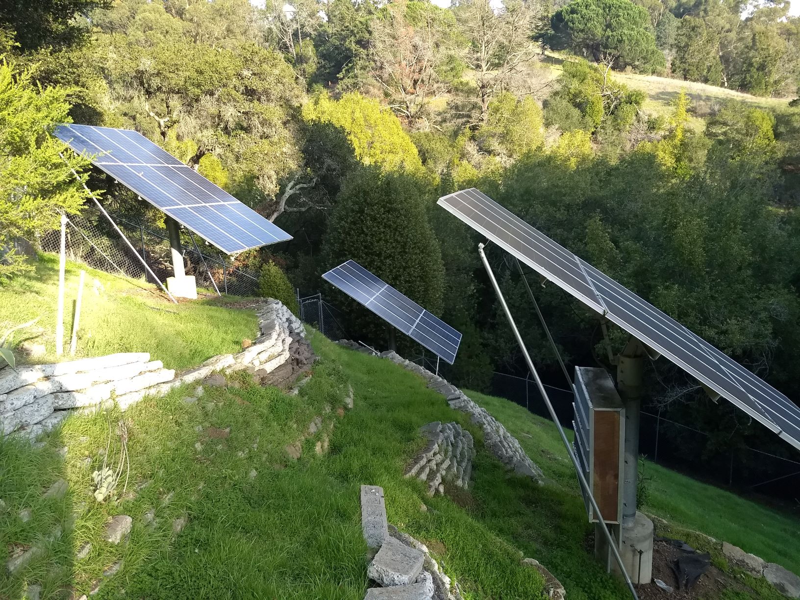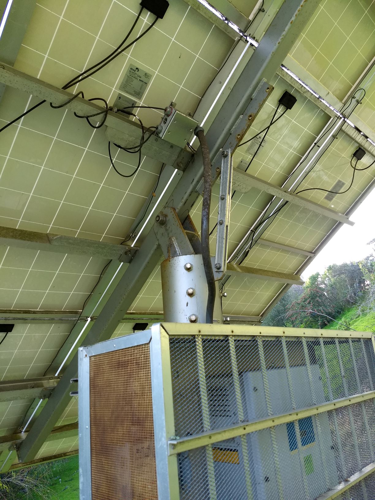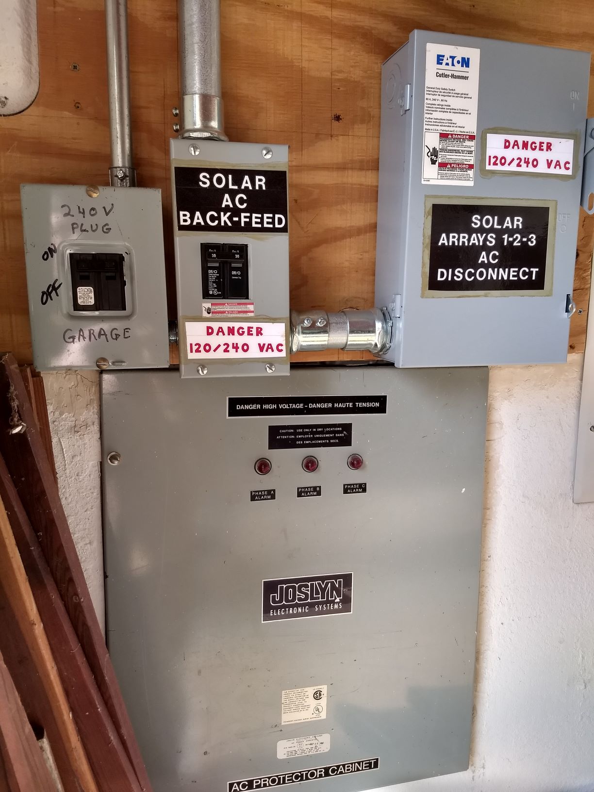 There is a small display plugged into the closest wall outlet to the meter box and a small unit plugged into a wall outlet closest to our desk top computer.The installer told me that the unit in the garage communicates with the little plug in box by the computer through the common wire in the house wiring.This little box communicates with the computer wirelessly and I can check anytime to see what it is producing.
