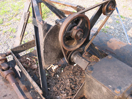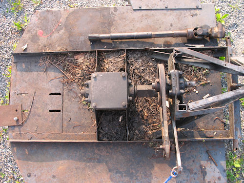 I don't have any additional advice for you, but that thing is amazing! I might be wrong but it looks homemade. I do not understand why whoever made/manufactured it didn't just have the PTO shaft fit directly onto the gearbox? The belt, pulleys etc seem redundant to me unless it was needed to increase blade speed over what the gearbox could provide. I guess it also serves as a sort of slip clutch.