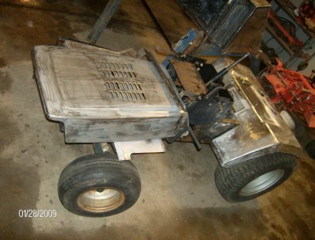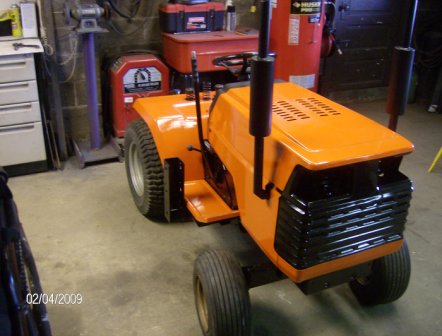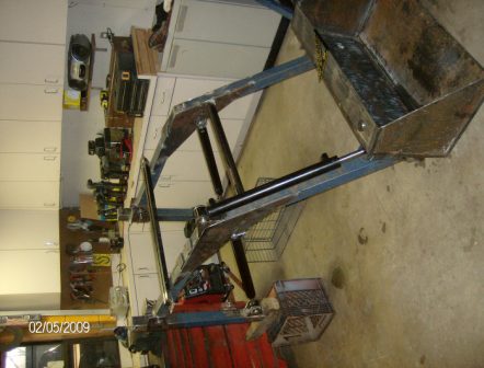 Hydraulic cylinders came in earlier this week. Got the mounting brackets for them made and tacked on. While i was waiting for the cylinders to ship my son and i repaired and painted the craftsman. I wanted to paint it the original color but i told my son he could paint it any color he wanted. He is an AC fan, so now it's painted AC orange.