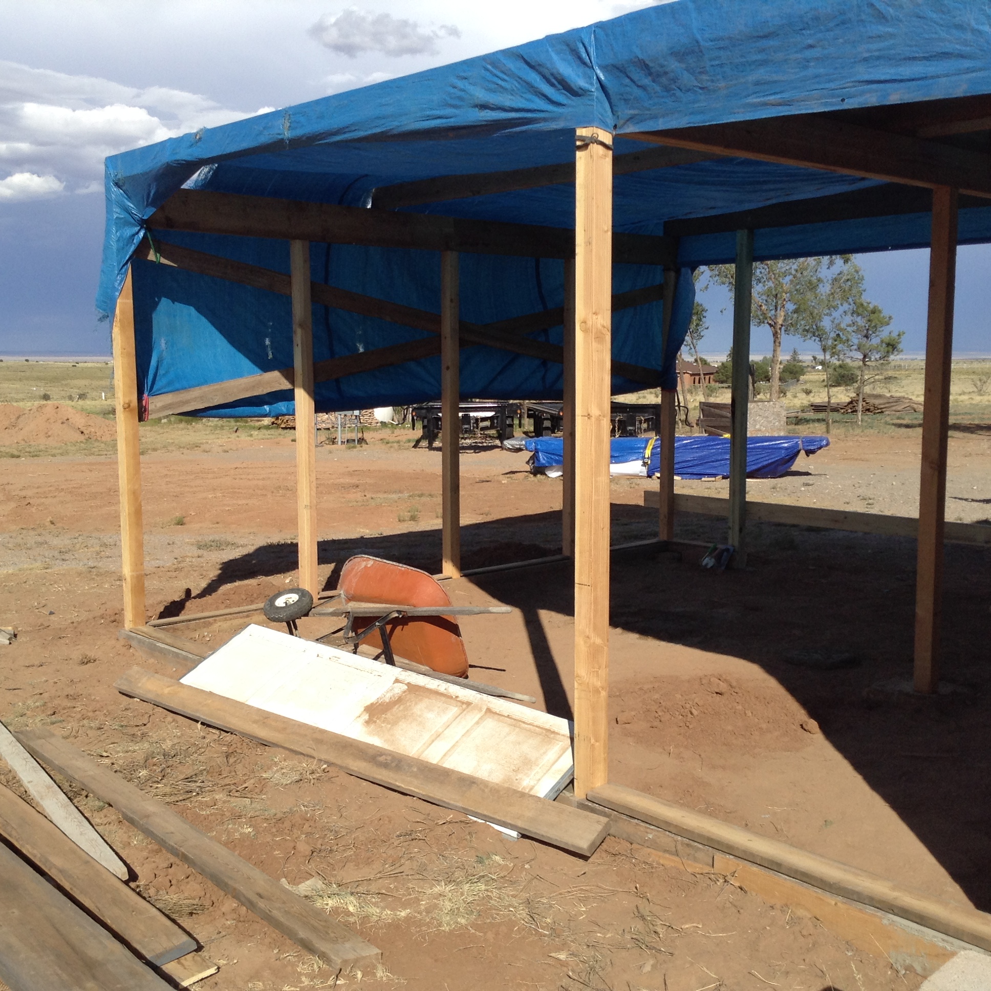 Started building a new "tractor house" as an addition to our shed. Area for tractor will be 12x20, area of 6x20 for work bench / tools. Above the 6x20 will be a storage area also 6x20x78" high. Got all the posts and beams in place, perimeter footer, and framing for 8x8 garage door. Have to go back on duty tommorow for 3 days, (so I can take a break... Forgot how much work it is to frame.... Maybe I'm just getting too old) I won't get a chance to get back on it until Sunday. The tarp was a necessity to get out of the sun... Sure was strong at 7200 ft elevation and 97 degrees for the past 3 days! View attachment 515252View attachment 515253View attachment 515254