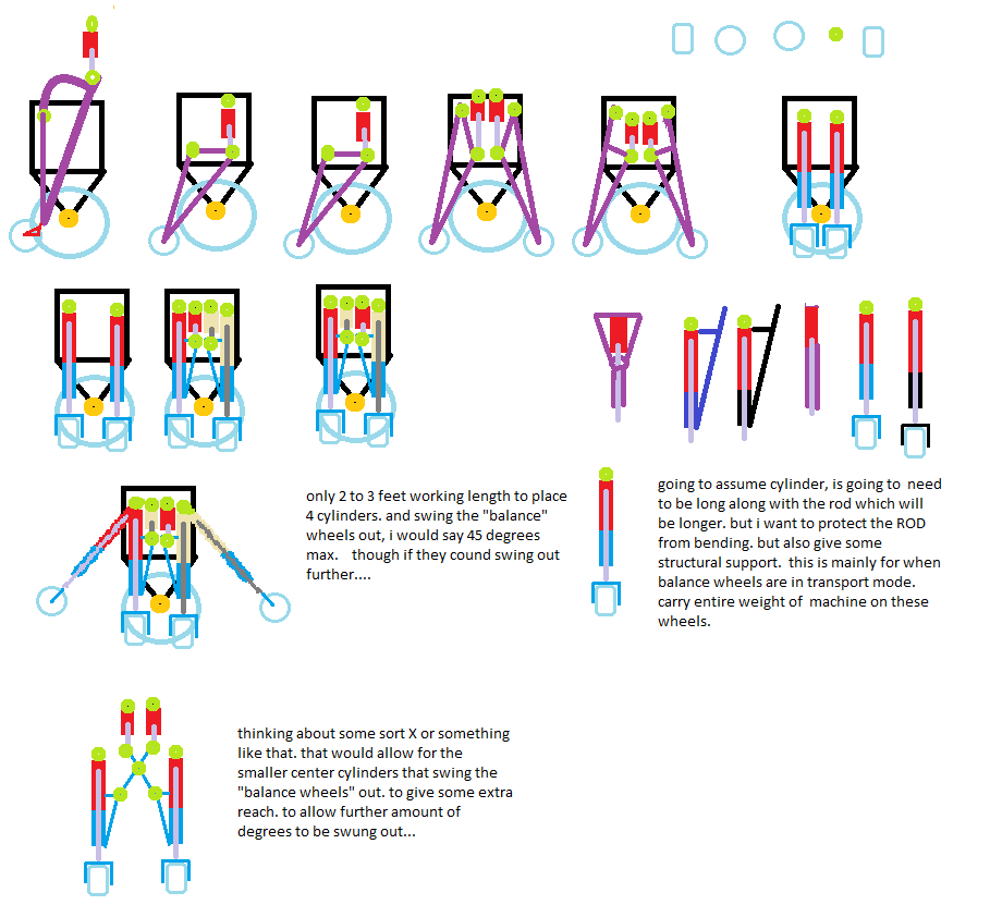 looking at the entire machine and seeing 3 sections 13.5 feet apart is bugging me. if i could go with 20 feet sections. a lot of extra complexity could be removed. for just dealing with the limited movement joints. and would only need say 8 cylinders instead of 12 cylinders.... but hhmmmss complexity vs larger and beefer cylinders... hhmmsss....