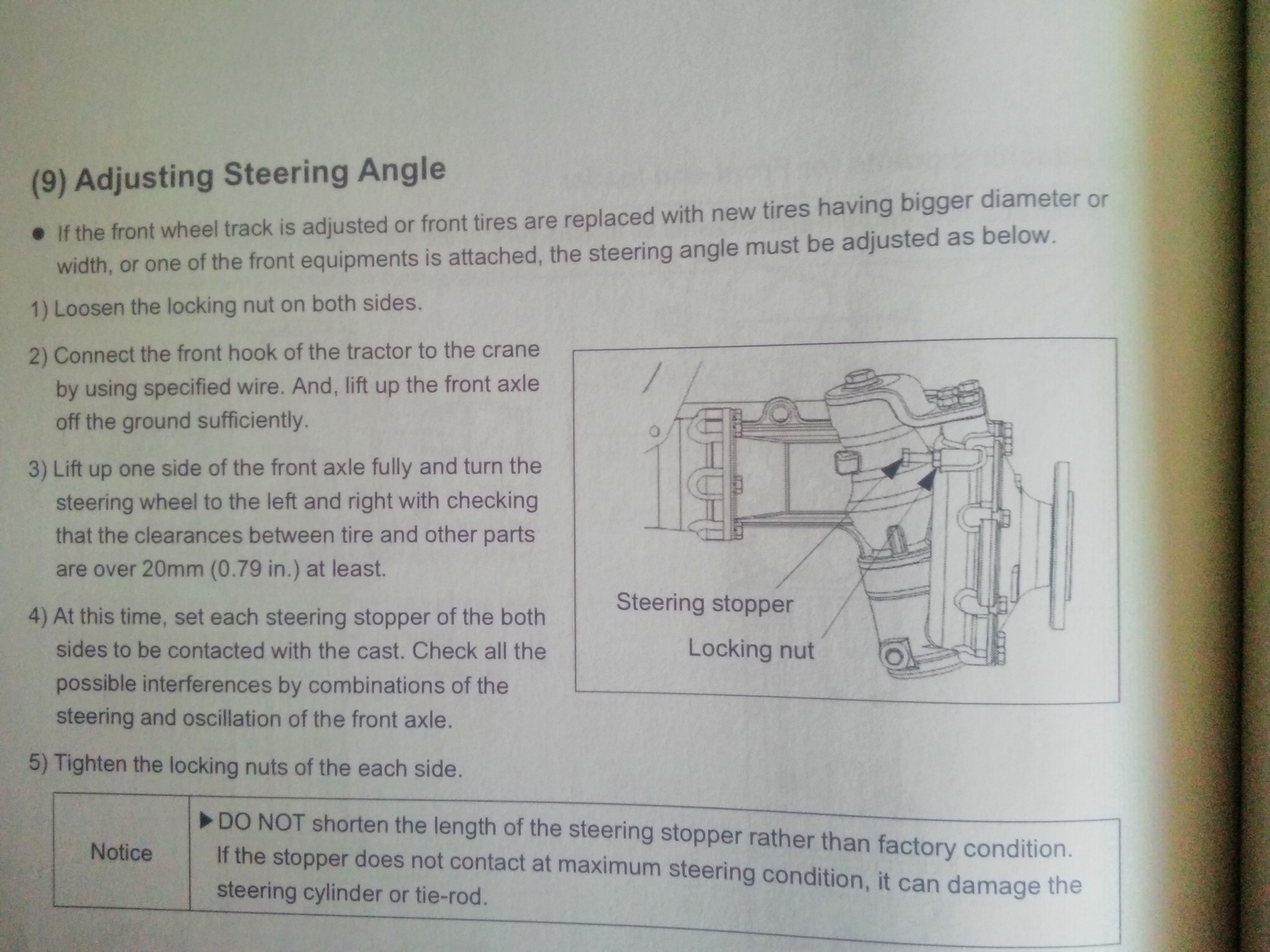If you adjust them, I would make sure that you set the stops on the front of the axle to contact at the same time, or JUST before the stops on the back of the axle. That way you limit steering with the pull side of the axle, not the push side... That is easier on the steering arms if you occasionally hold the wheel against the limit trying to turn sharper...