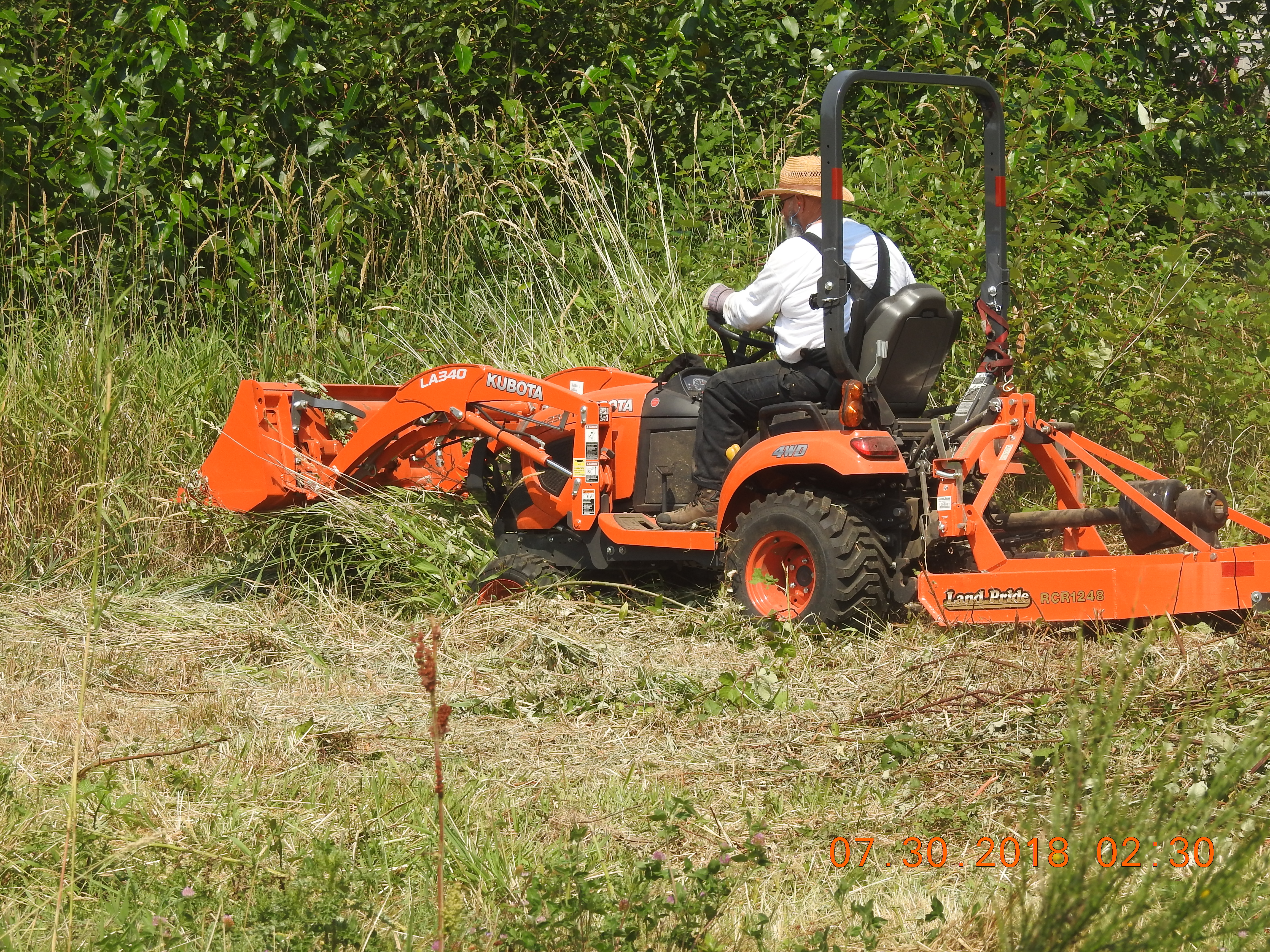 It's been pretty dry lately, so we have been working on cutting down the tall grass and small saplings in the back yard. I was pleasantly suprised by how well the 48in brush mower worked for it. Now to go out with the backhoe and thumb for some root extraction. 306.JPG