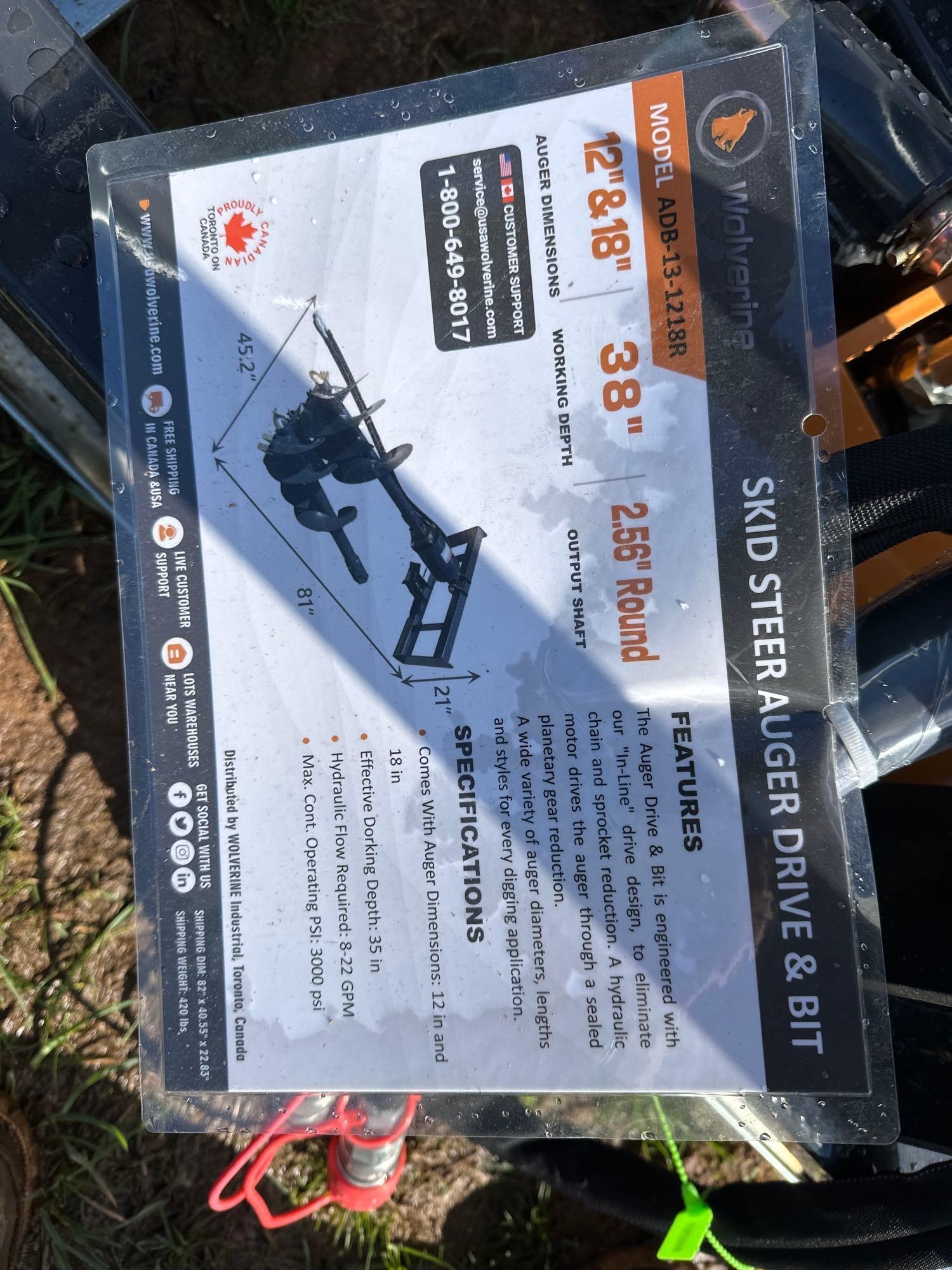 Located at SEAC lot in Young Harris, GA - New/Unused Wolverine Quick Attach Auger - 2 bits included - 12in bit -18in bit
