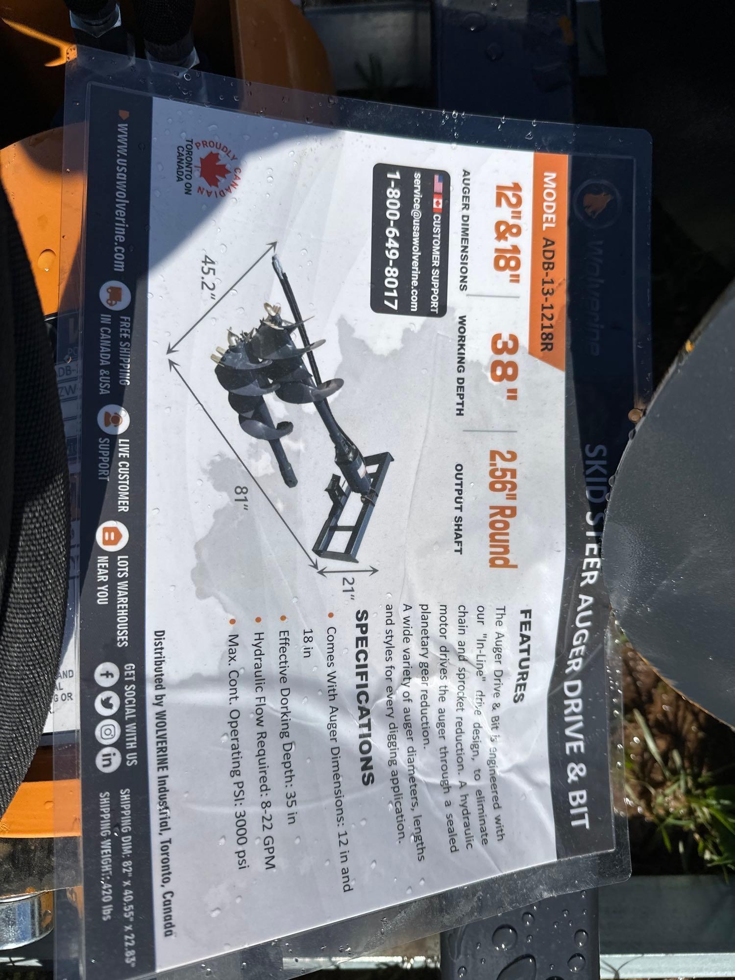 Located at SEAC lot in Young Harris, GA - New/Unused Wolverine Quick Attach Auger - 2 bits included - 12in bit -18in bit