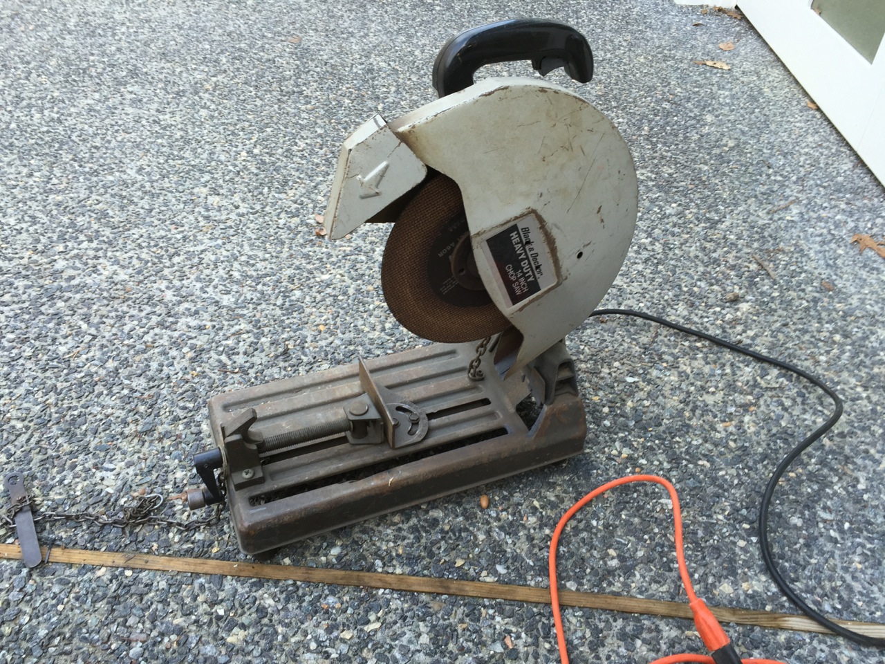 Finally, here's a 40+ year old chop saw my dad gave me, along with two packs of 14" blades (dozen in each pack). I think I am set for life. That saw has taken a lot of abuse over the years on various job sites, and at one time was used to cut hundreds of steel studs every day on drywall jobs. This was made back when B&D was a good product.