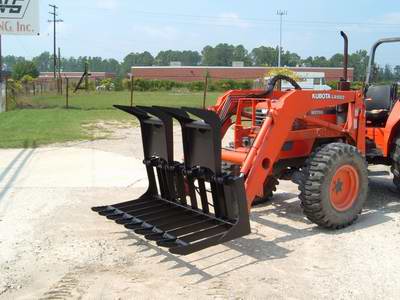 I thought I would let you know that we now have an attachment called the open bottom grapple "OBG2". The OBG2 is for Loaders, mini skid steers, and light duty skid steers with lift capacities from 800 to 2,200 pounds and comes in widths of 48", 56", 64", and 72". The 48" OBG2 has one cylinder and grapple and the 56", 64", and 72" has two cylinders and grapples. The OBG2-64 is shown below. It is great for picking up logs, limbs, brush, construction debris, etc., and it allows dirt to fall through. Like with our other products we will provide the OBG2 with the skid steer mount or any other mount to hook up to your loader.