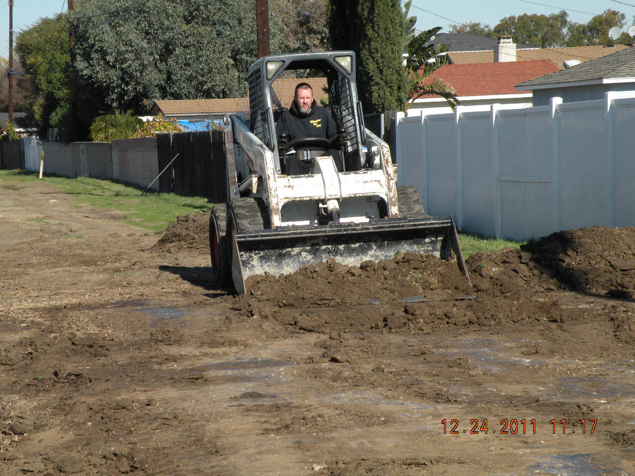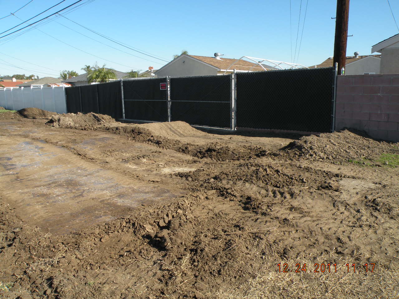 Here is the track layout. Will have 11 turns, main straight is 150ft long. Will have four jumps, or two sets of doubles @ 20 ft span jump to jump. I staked the track layout, and caution taped it off so I could see how the path went for gradding, digging and building, will only be dirt when I'm done. Track is from the far end of the White fence in the first pic to the far end of the pink brick wall, lots are 50' wide so track is 150' long X about 50 to 60 ft wide. Anywere from 7500 sq ft to 9k sq ft of track area.